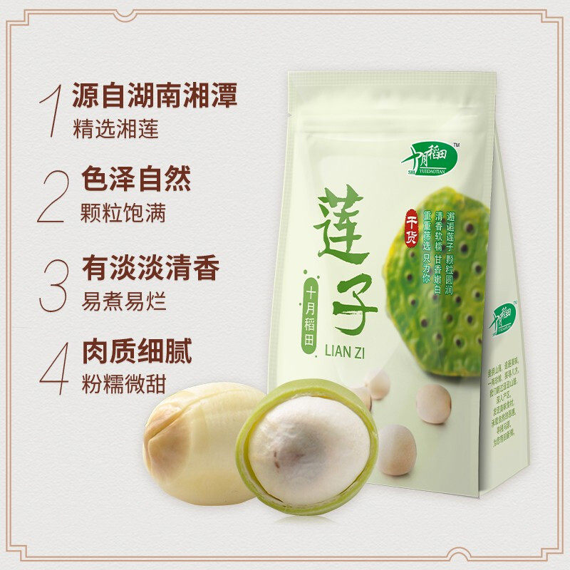 十月稻田 Лотос семян ядро потирать кожа белый лотос семян 250 г смесил и приготовление пищи и легко гниют сухой