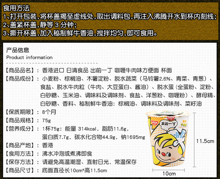 Гонконг Ri Qing Ding Ding Curry Curry вкусы говядины Удобная лапша заповедник быстрая чашка лапша 73,9 г 0076