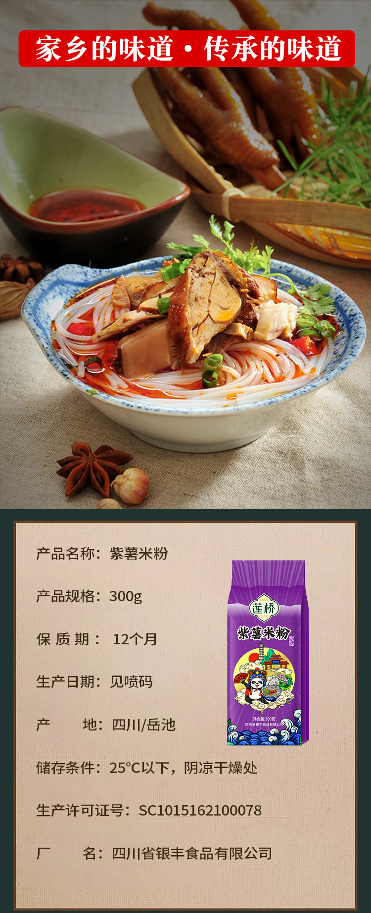 莲桥 Фиолетовая картофельная рисовая лапша 300G Yuechi Rice Loods