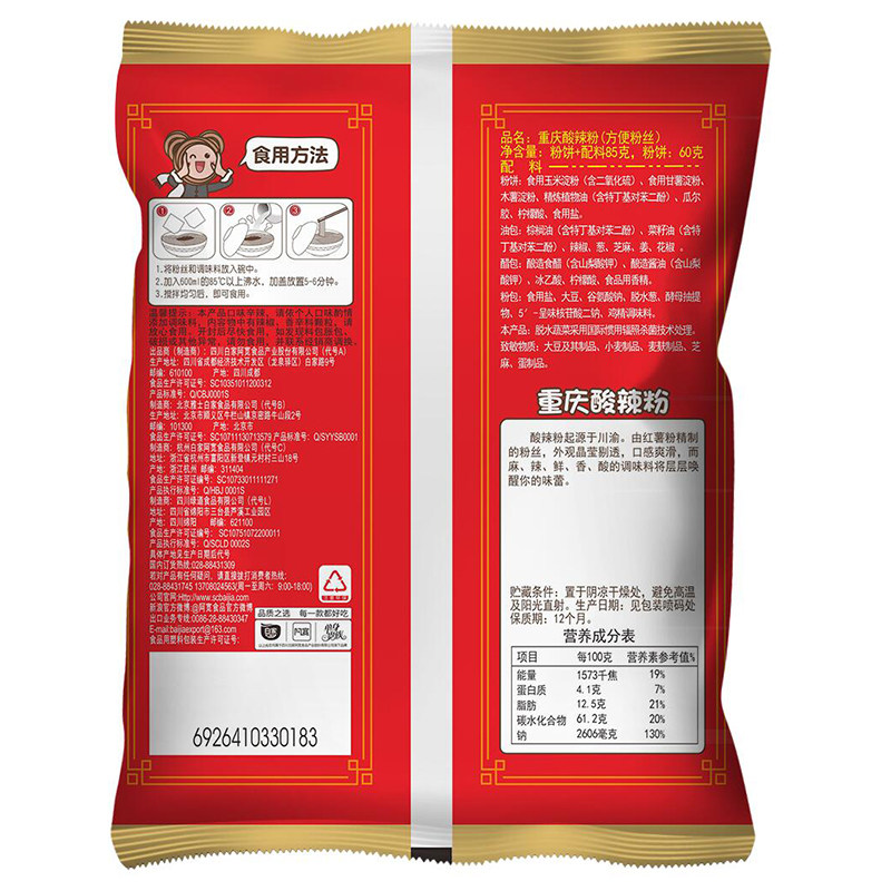 白家陈记 Горячий и кислый порошок 85 г/сумка удобная фанаты лапши быстро пивоварение