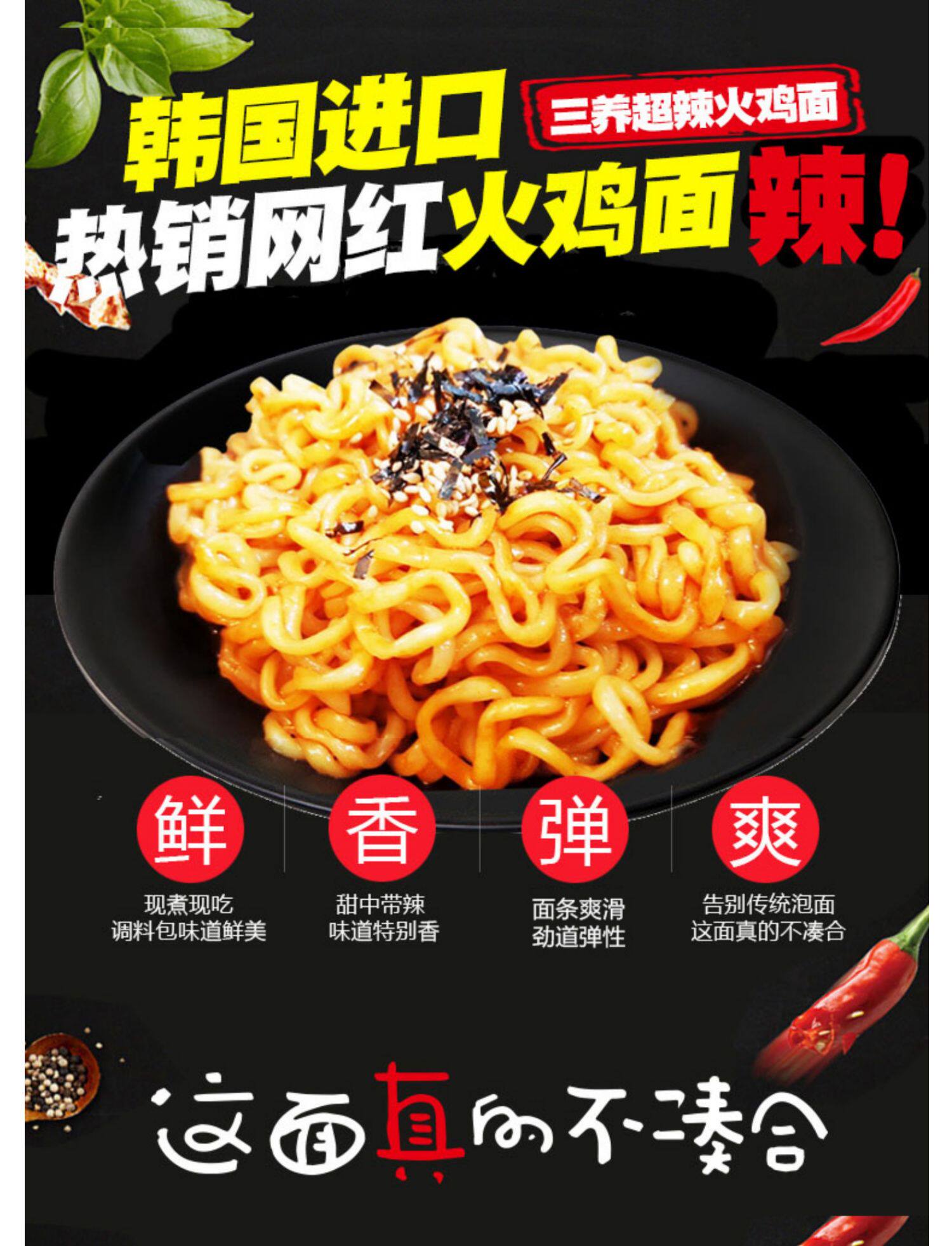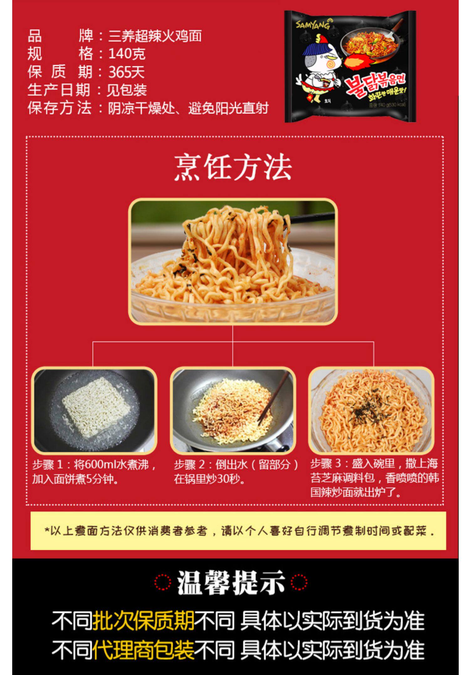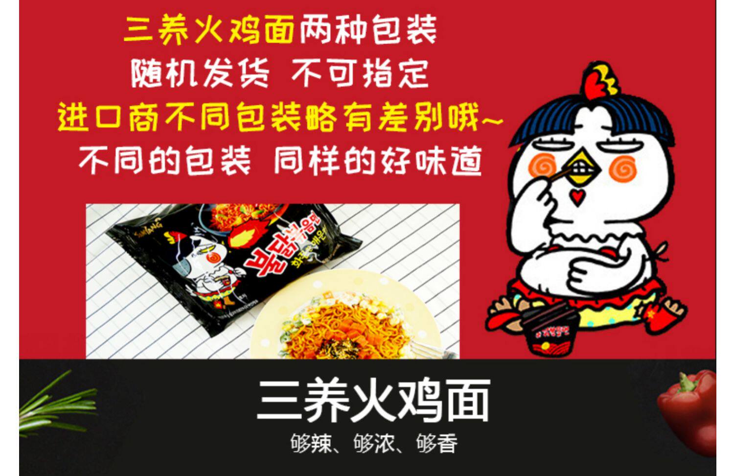 Корейская импортная сеть красная лапша индейки Извращенные супер пряные три -куриные ароматы Мгновенный лапша фаст -фуд 140 г острый куриный вкус