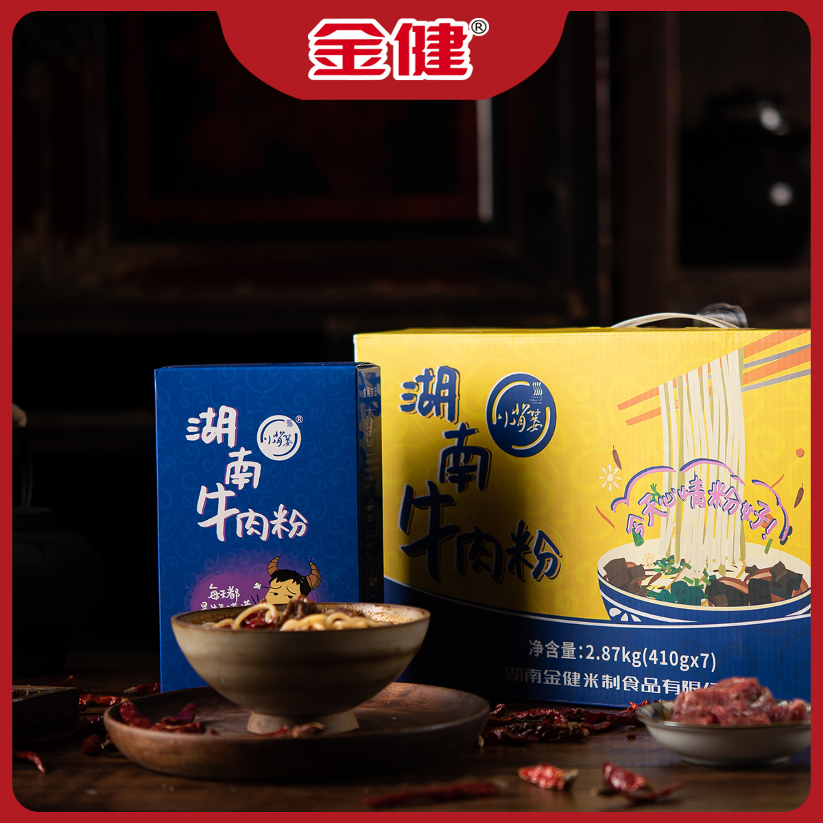 Джинджян маленькая корзина с задними корзинами Чангде порошок говядины 410G*7 подарочных коробок в Hunan Specialties Changde Грубая рисовая лапша Гилин Цзянси