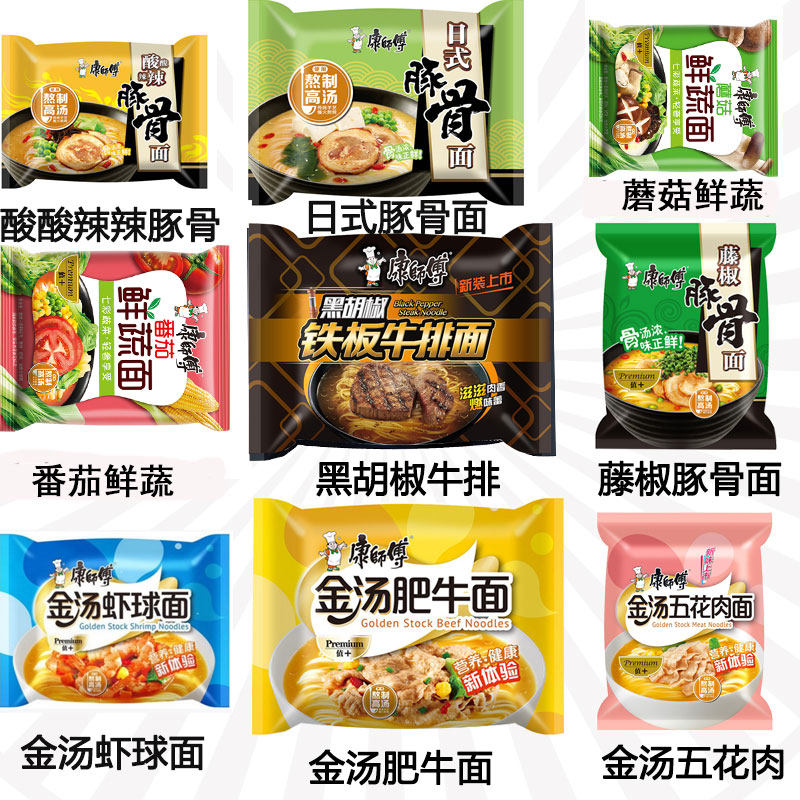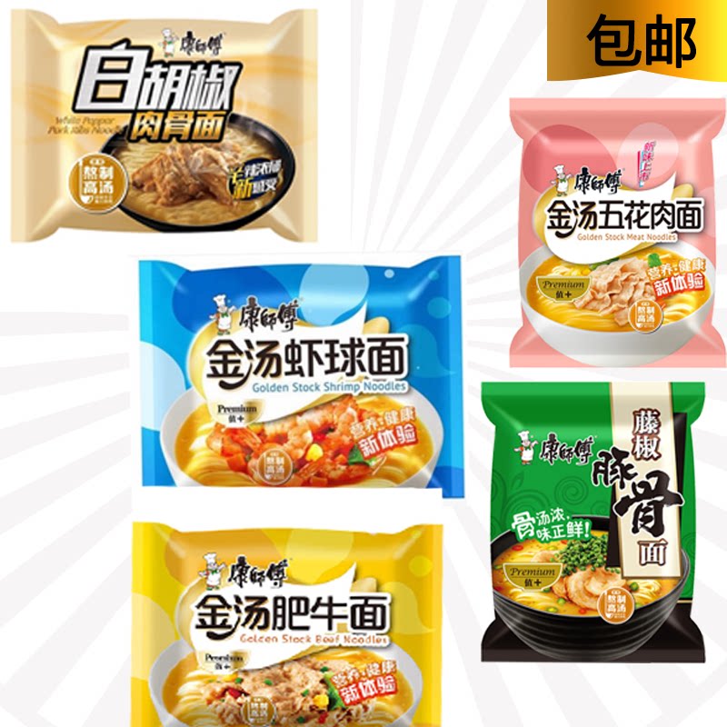 Мастер Коннг Мгновенная лапша, золотой суп, жирная говядина, шарики с креветками, черно -белый перец, японский кислый, кислый, пряный, пряный, виноградный перец, кости пилафа, бесплатная доставка