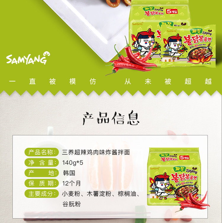 Южная Корея импортировала Санчхун Жареный соус лапша Зеленая пряная штука