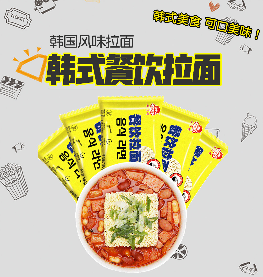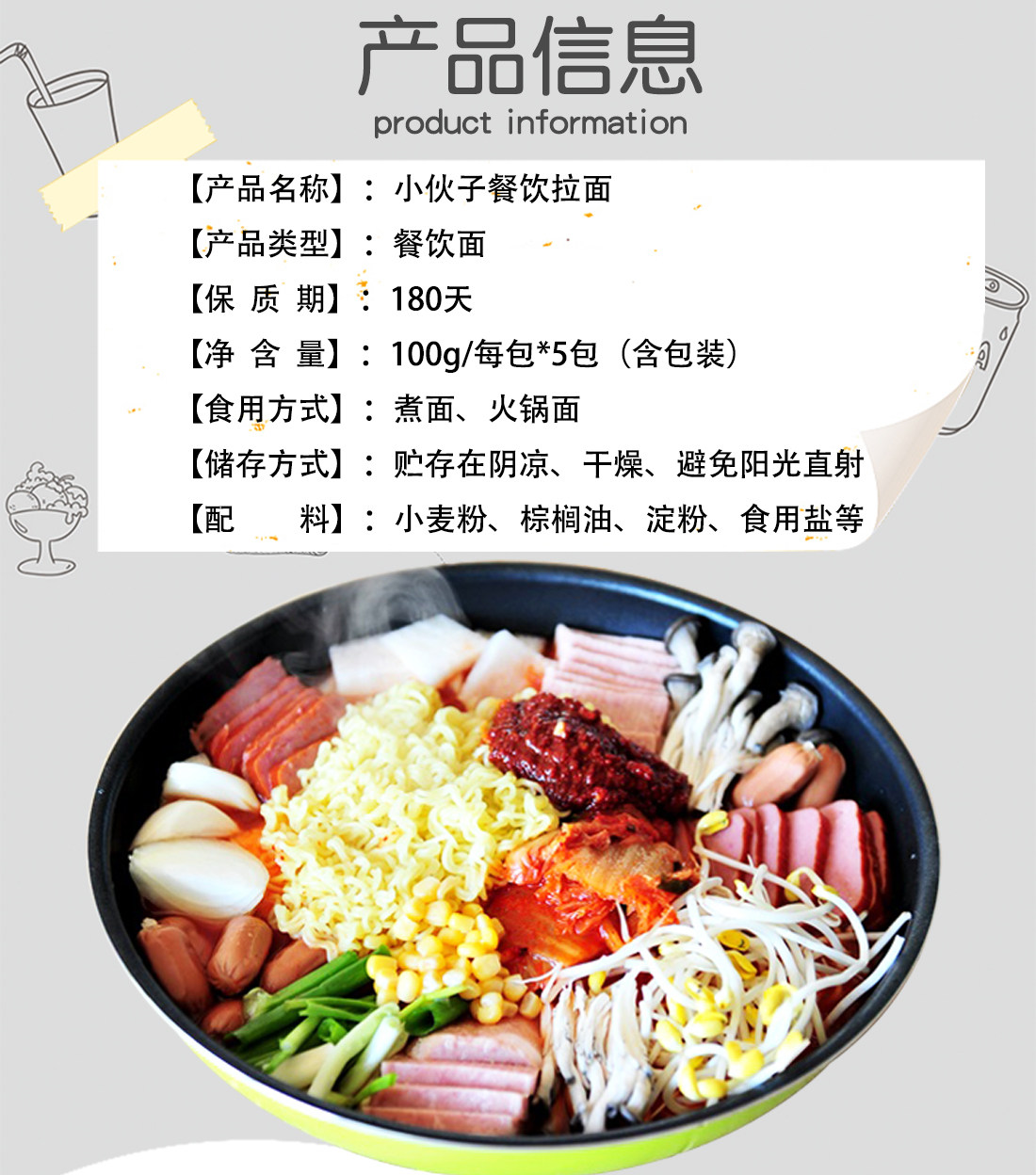 小伙子 Корейские рамэн корейские войска горячий горшок с лапшой горячий горшок горячий горшок острую горячую пищу мгновенную лапшу 100 г*5 мешков