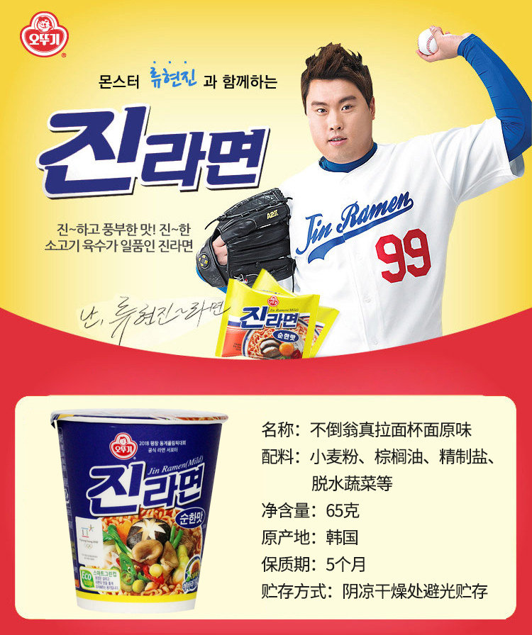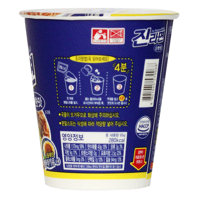 Корейская мгновенная лапша ведро маленькая чашка лапша 65 г, без пряного тумблера Aoti Real Ramen Original Cup Ramen Ramen