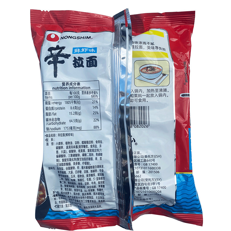1 комплект бесплатной доставки Nongshim Shin Ramen со вкусом креветок 120 г * 20 упаковок лапши быстрого приготовления вкусная вареная лапша быстрого приготовления в пакетиках
