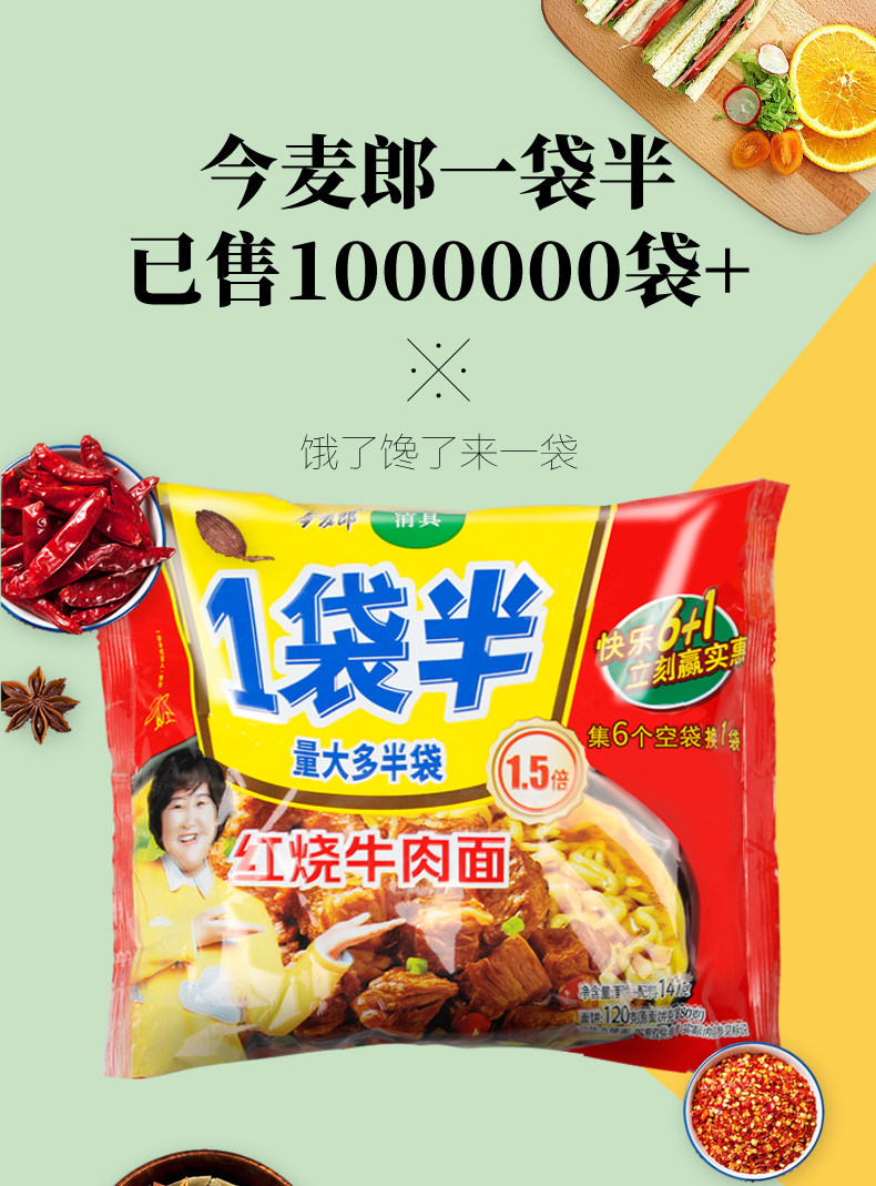 今麦郎 Мешок с половиной лапши в сочетании с 24 мешками с мультисыпленным фаст -фудом.
