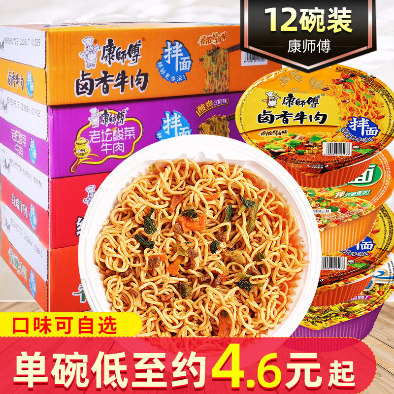 康师傅 12 тарелок сухой лапши, тушеной говяжьей лапши, острой лапши быстрого приготовления, целая коробка, упакованный фаст-фуд, поздний ночной перекус