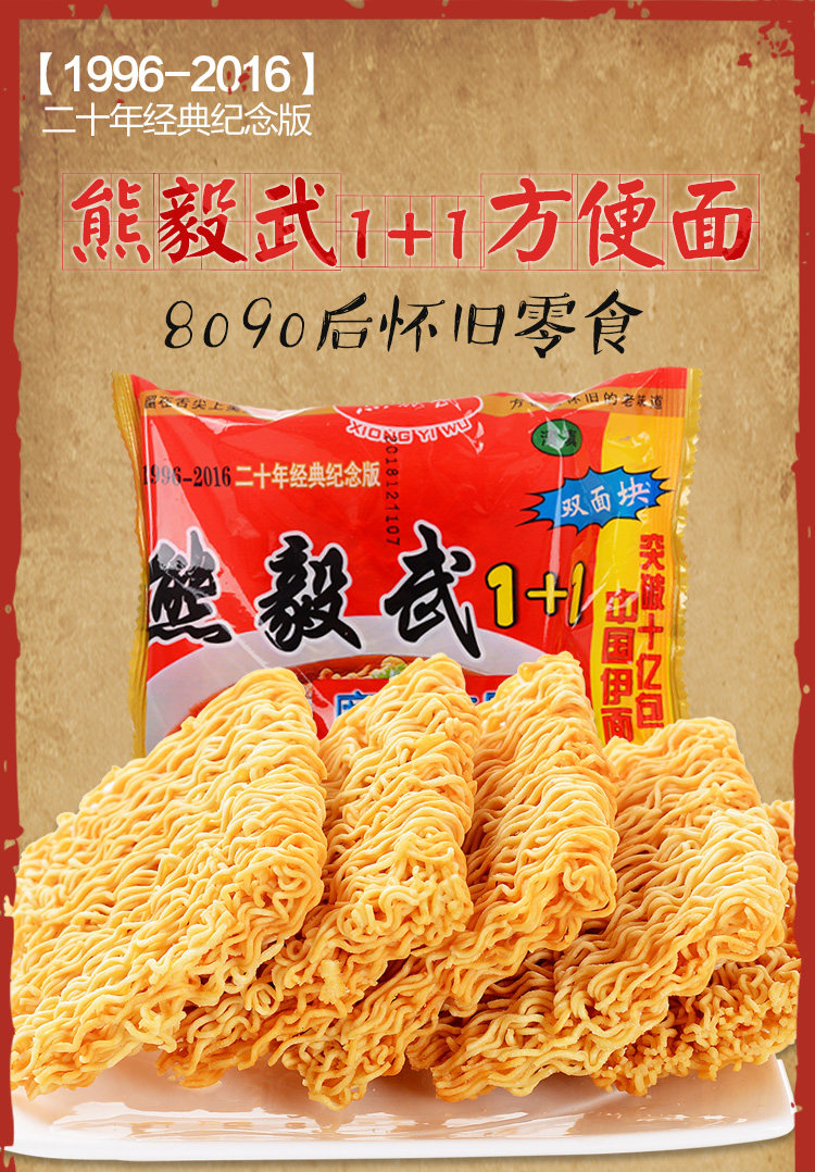 Лапша Xiong Yiwu Gan, упаковка 62 г, 1 + 1, двусторонние блины, лапша быстрого приготовления 8090, ностальгические повседневные закуски, хрустящая лапша