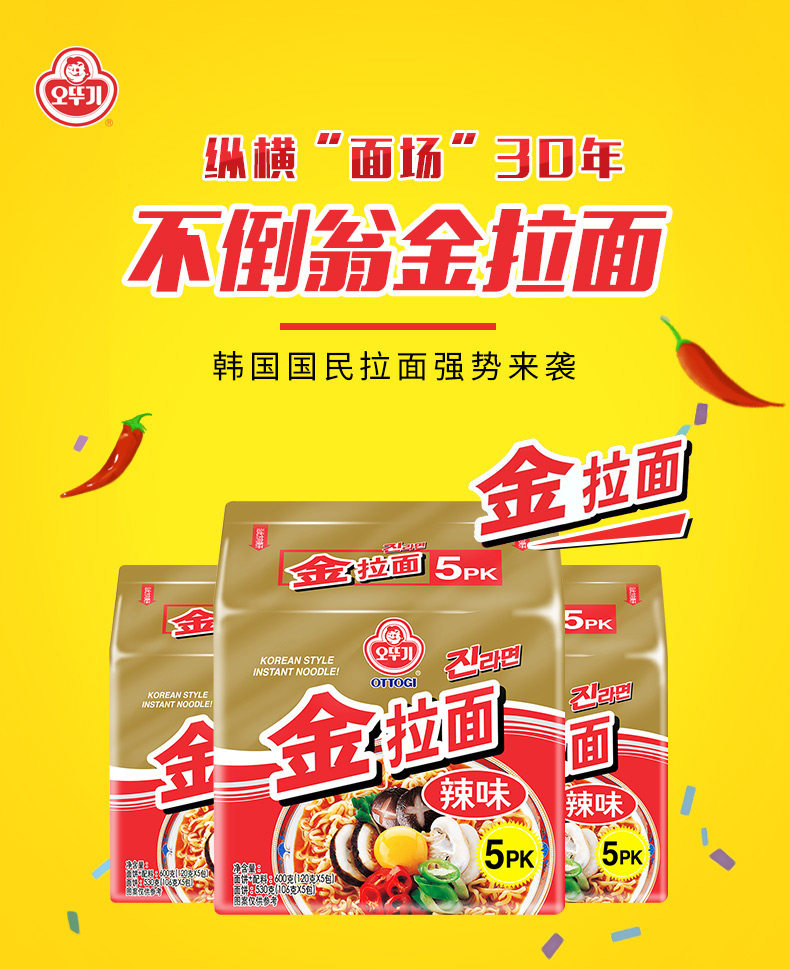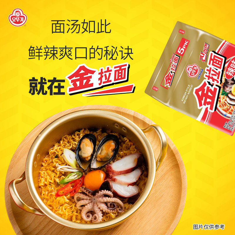 Южная Корея импортировала мгновенная лапша, пряная золотая рамен 5 мешков корейской лапши фаст -фуд, лапша, вареная лапша