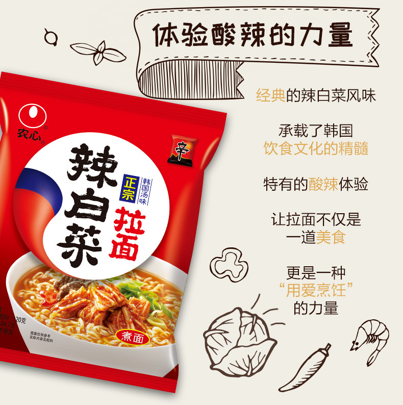 Нонгсин горячая капуста рамэн корейский аромат мгновенный лапша корейская быстрого пилота -пузырьковая лапша суп лапша 120 г