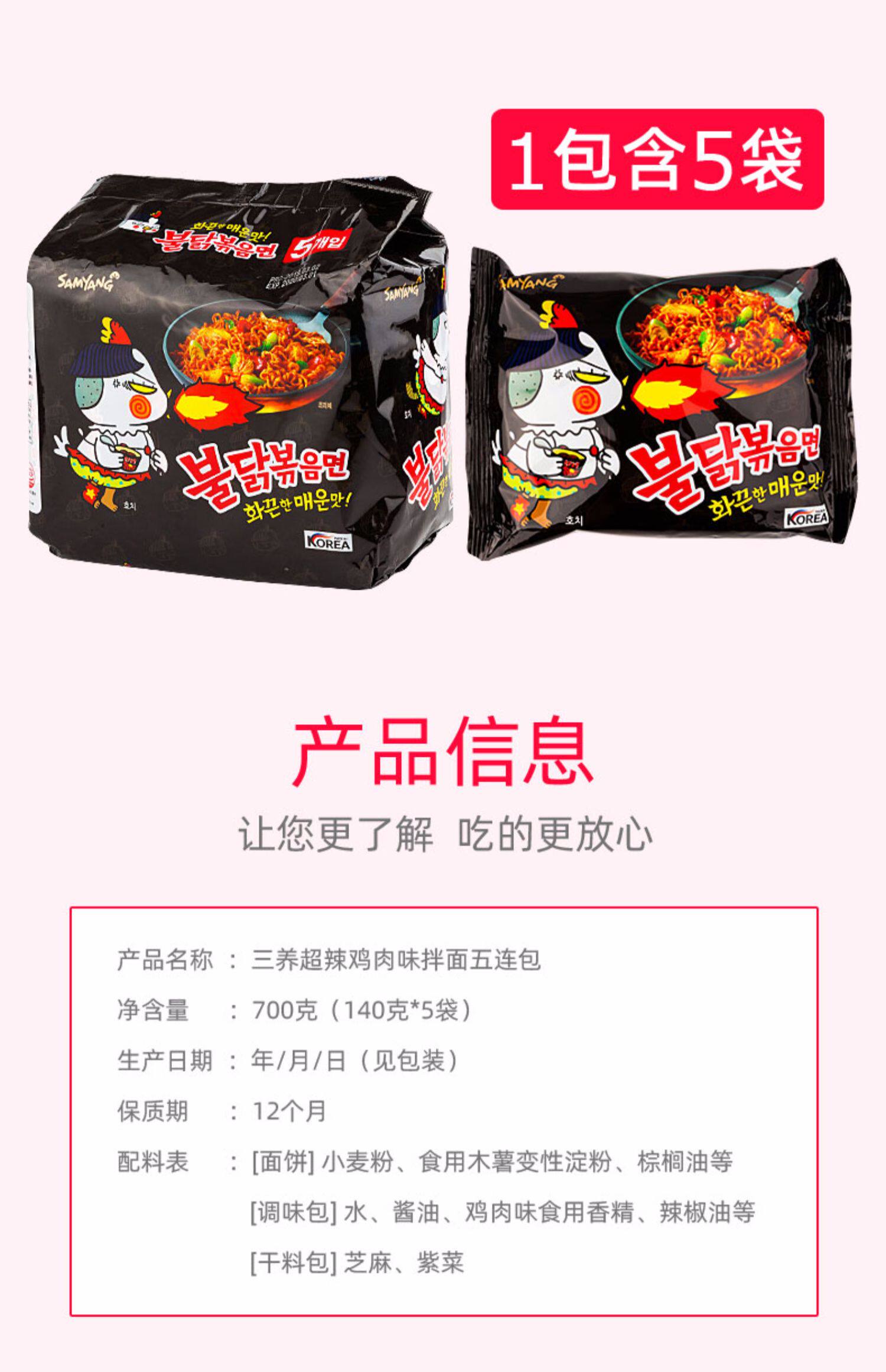 Сан -Ян Южная Корея импортировала лапша индейки 10 мешков с подлинным супер пряным соусом мгновенный лапша, целая коробка сухой смешивания извращенной лапши