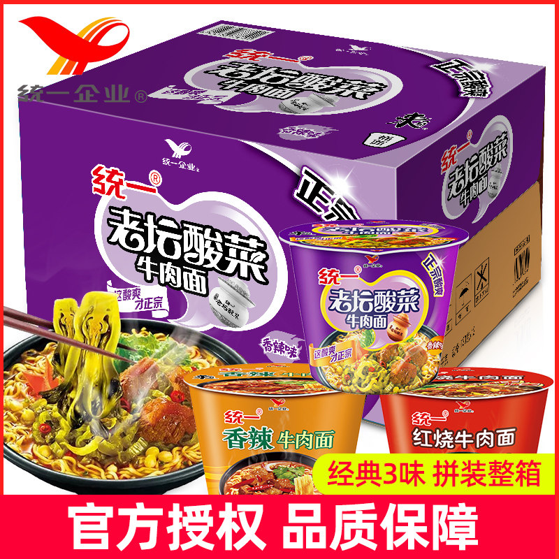 统一 Приходите к ведру с мгновенной лапшой, 12 баррелей смешанного старого алтаря квашеной капуста Savanx, пряная лапша говядины, пищевая лапша