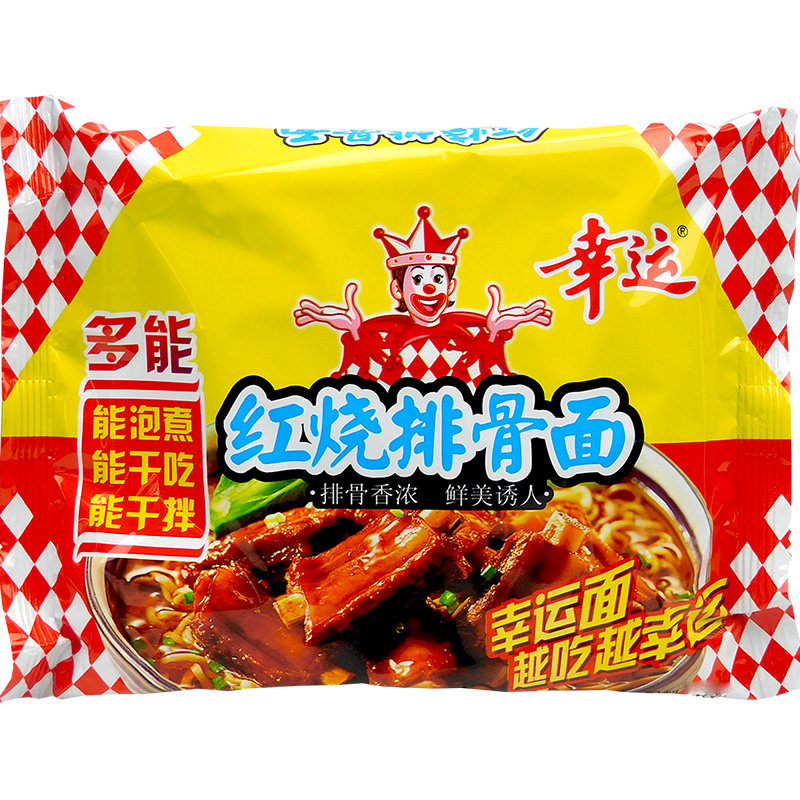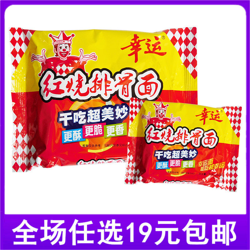 Счастливая красная лапша обжаренная ребра с ребрами 42 г мгновенной лапши сухой пищи просто ностальгическая ностальгическая ностальгическая цельная коробка закуски закуски с закусками