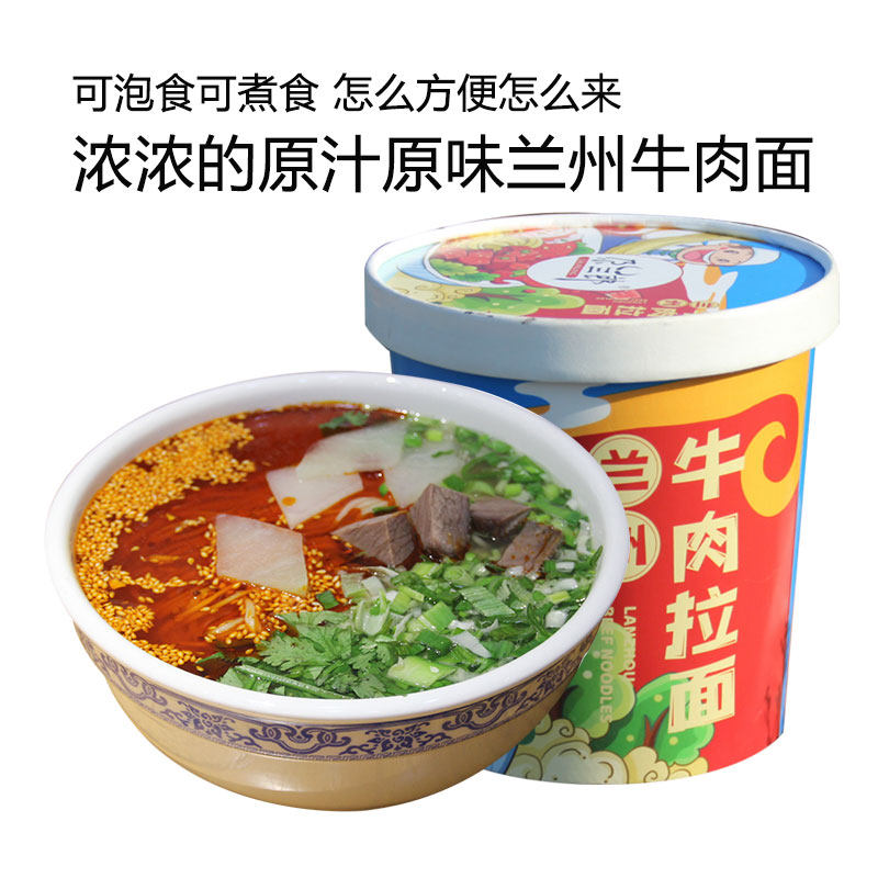 Ланчжоу говядина лапша рамэн мгновенный лапша фаст -фуд фаст -фуд Гансу Специальная лапша Бесплатная кулинария Оригинальный сок Оригинальный суп. 6 баррелей цельной коробки