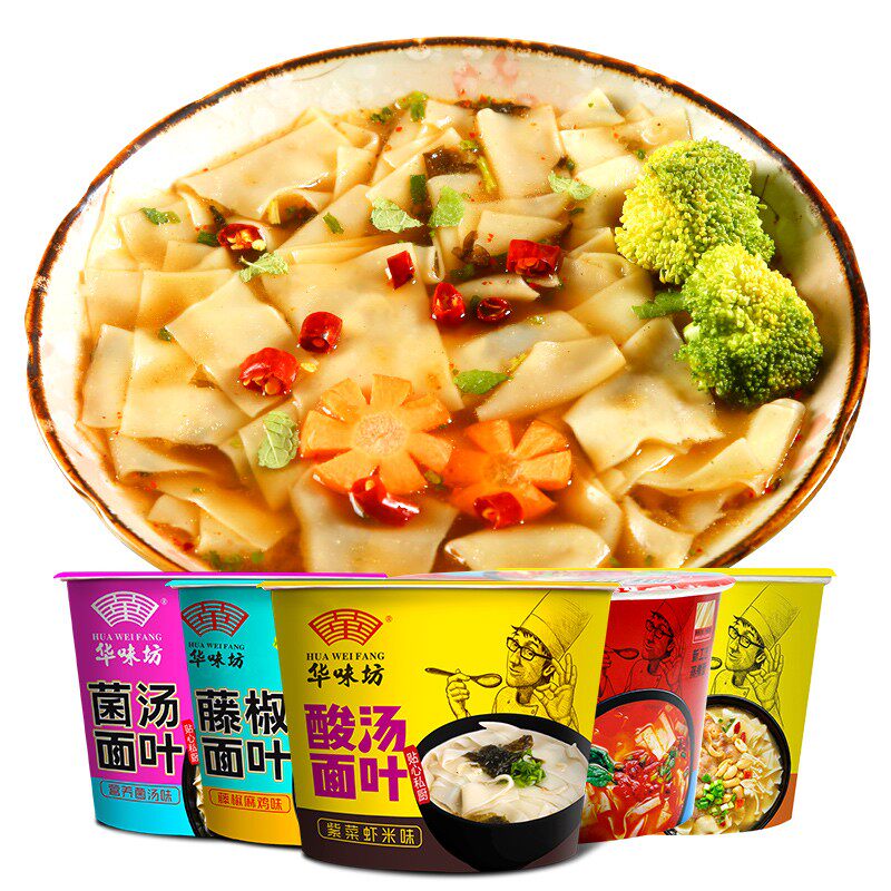 Хуавейфанг кислый суп -суп из листьев лапши, мгновенная лапша фаст -фуд, еда, общежитие, ужина