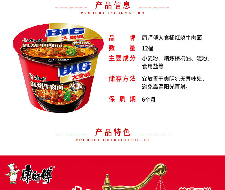 - [12 баррелей] Большая пищевая ведро с красной жареной говяжьей лапшой