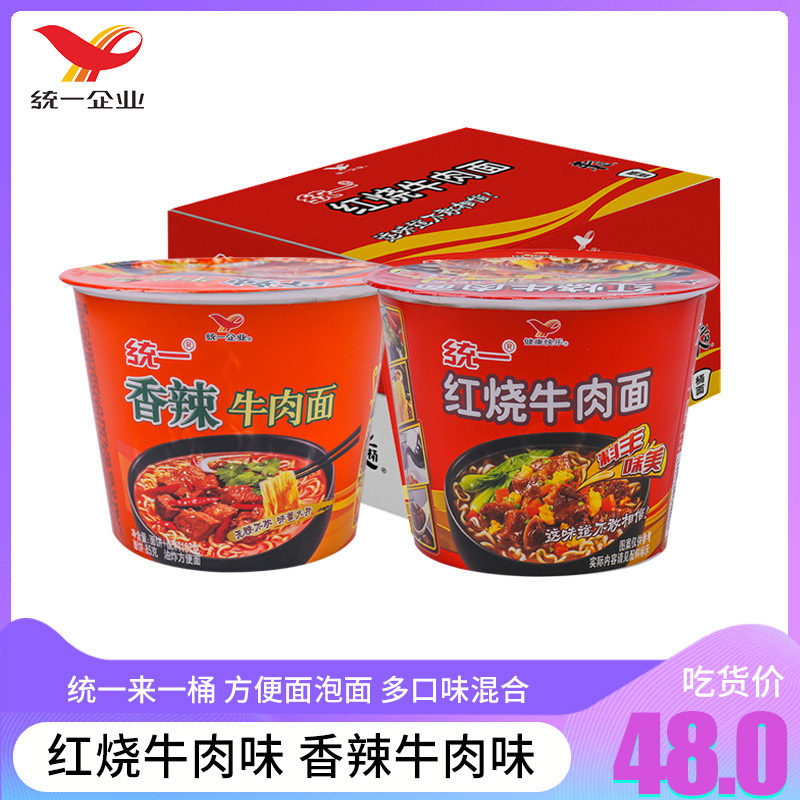统一 Приходите к ведру с тушеными говяжьими бочками, пряным бочкой*12 баррелей лапши с лапшой, лапша, ужин с лапшой, ужина