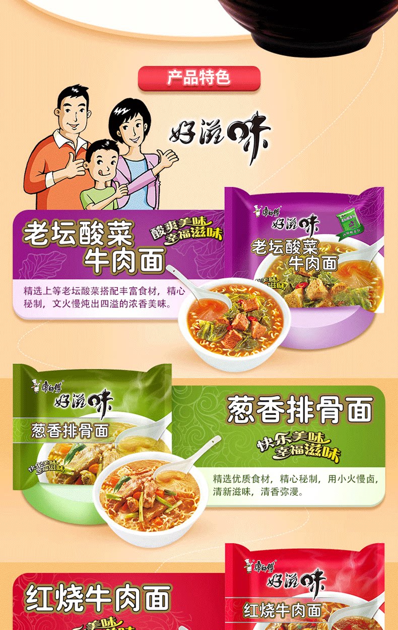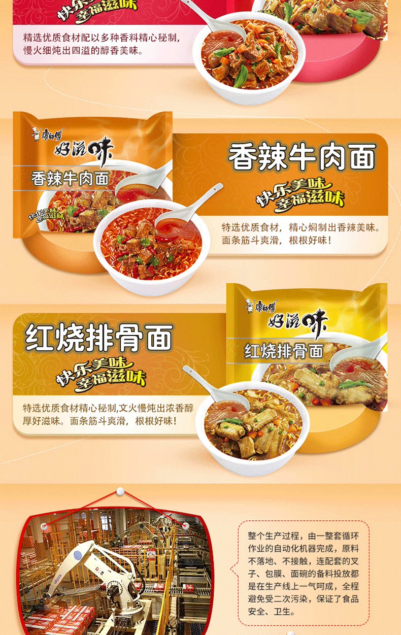 康师傅 Удобная лапша, полная коробка, оптовая лапша мгновенная, хорошая вкусовая ребра, пряные кислые кислы