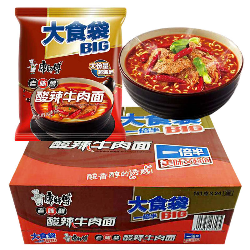 Master Kong Instrant Loodles Большой пакет с едой в полтора раза прямая и кисенная говяжья лапша 161 грамм сумки мгновенная лапша и мгновенная еда.