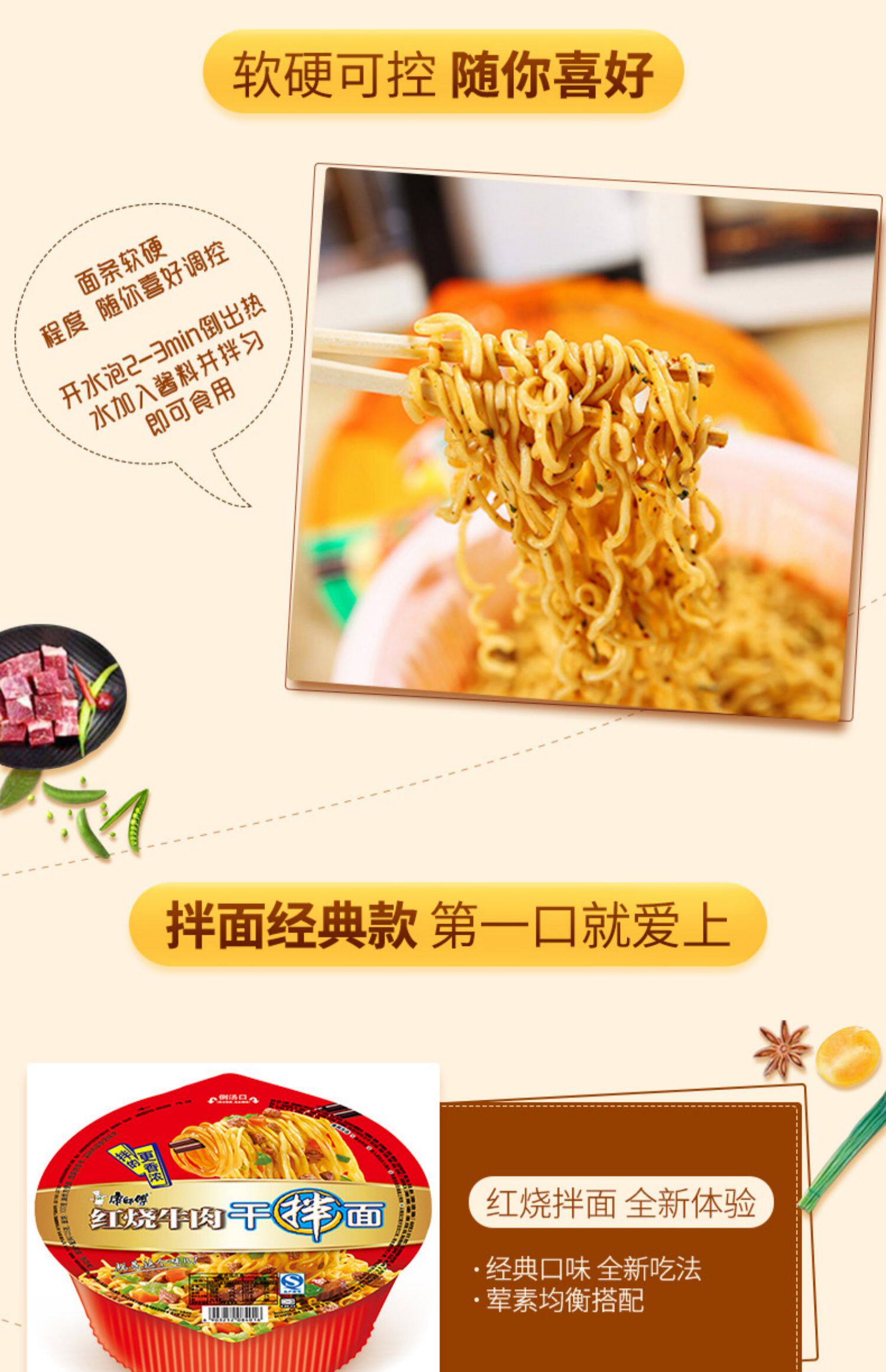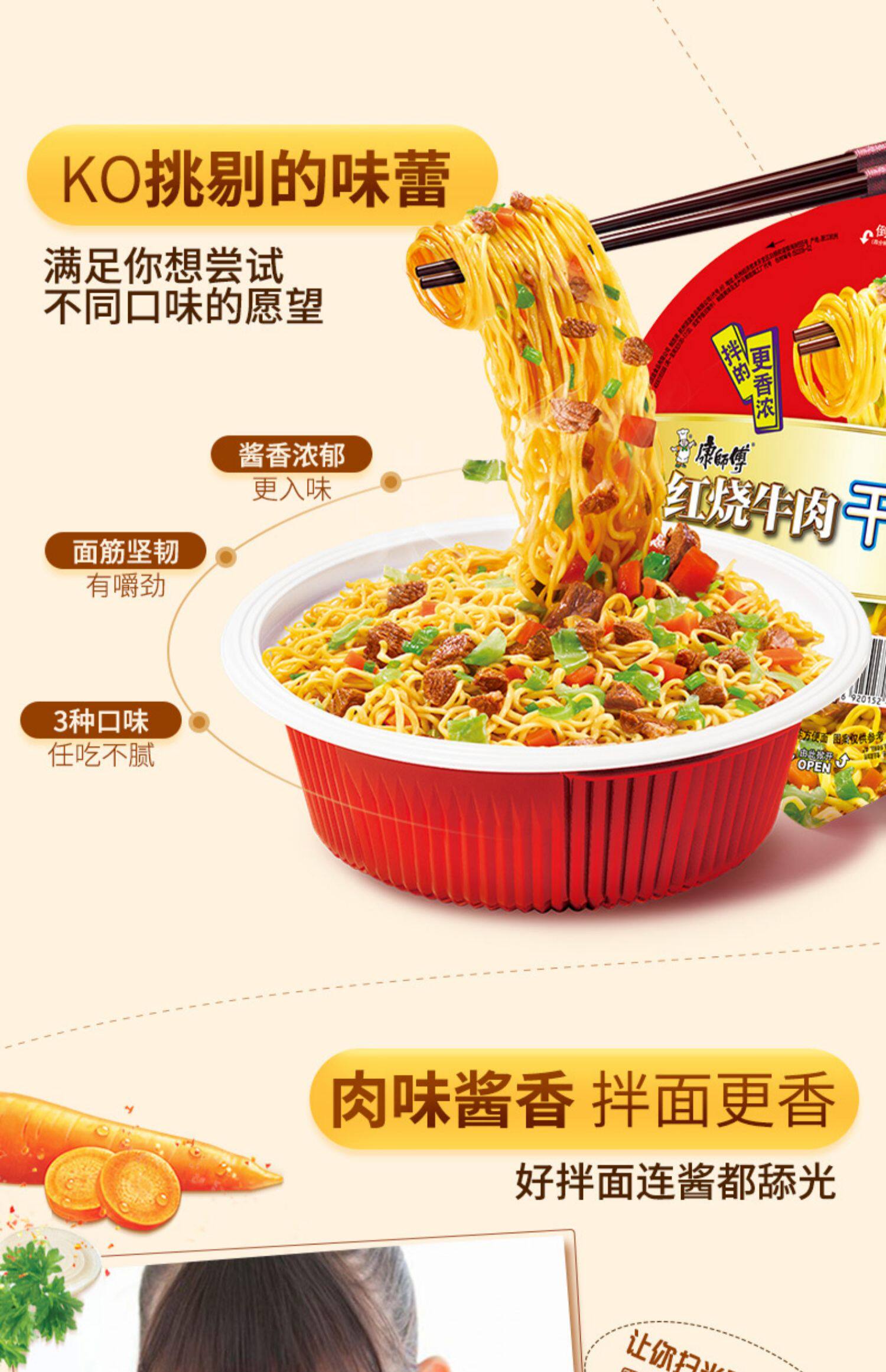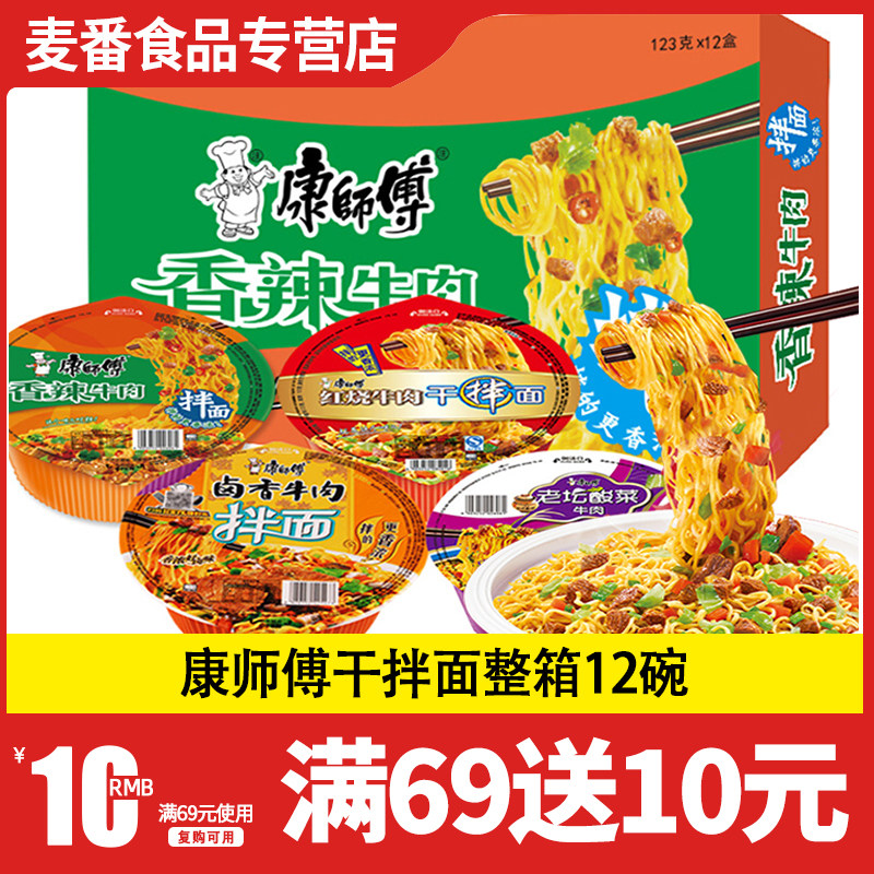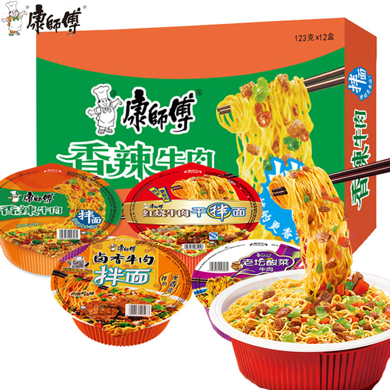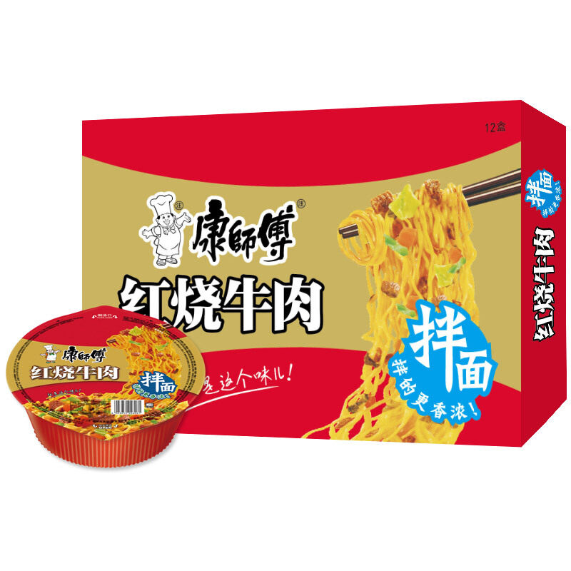 康师傅 Сухая лапша, 12 мисок с красной обжаренной говяжьей лапшой, голодной лапшой мгновенной лапши, вареная коробка с лапшой, не имеющая фаст -фуда, варено