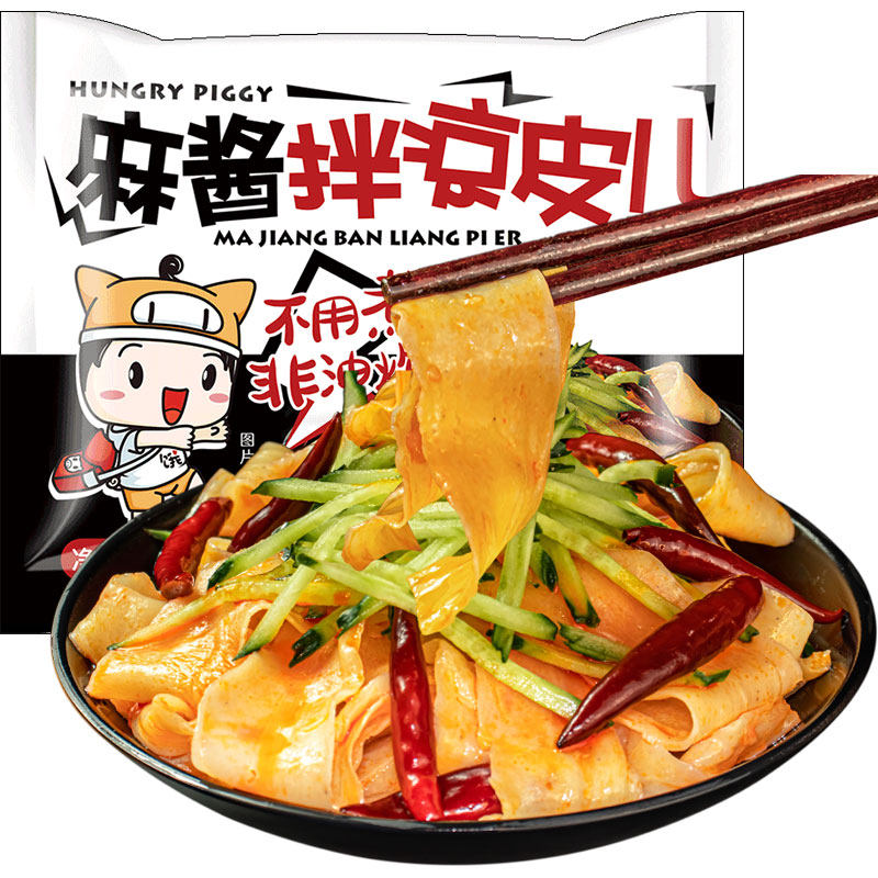 Голодная свинья Shaanxi в стиле холодная кожа Свежая красная кунжутная паста сушеная лапша без жареной кожи 220G