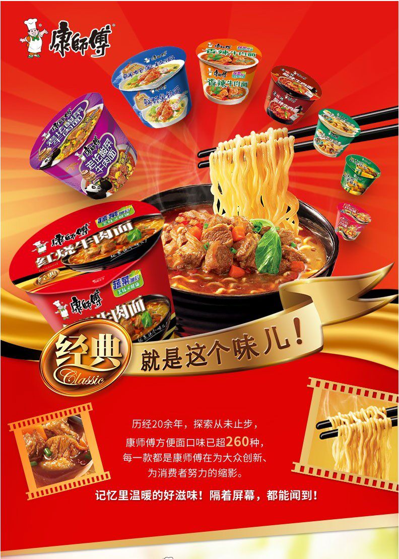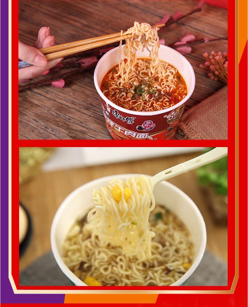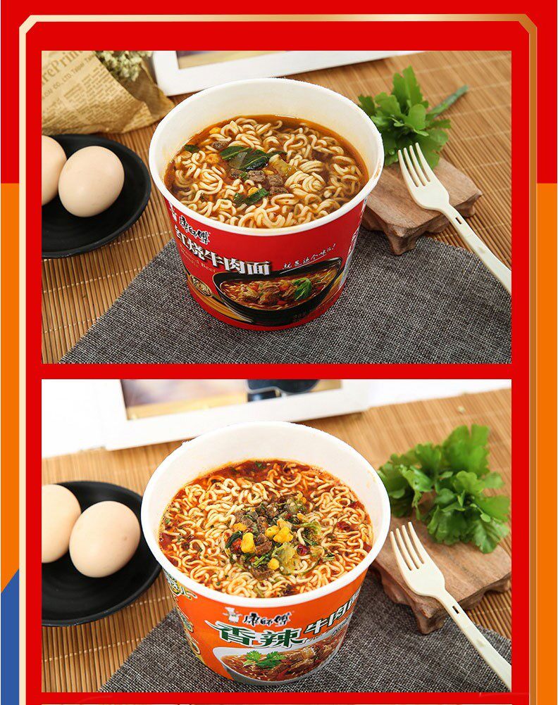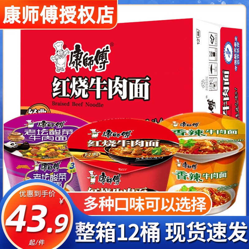 康师傅 Мгновенная лапша Классическая бочковая лапша 12 баррелей с красной острой говяжьей говяжьей старая алтарь -квашеная квашеная