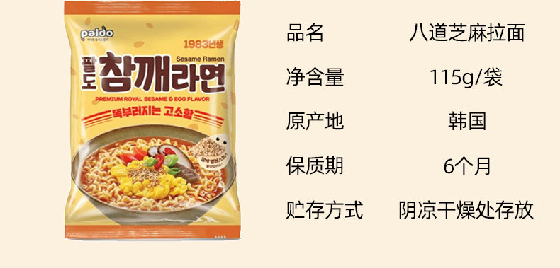 Южная Корея импортировала еда восемь кунжутные рамэн 115G быстрого питания с лапшой с лапшой, чтобы взять 6 мешков бесплатной доставки