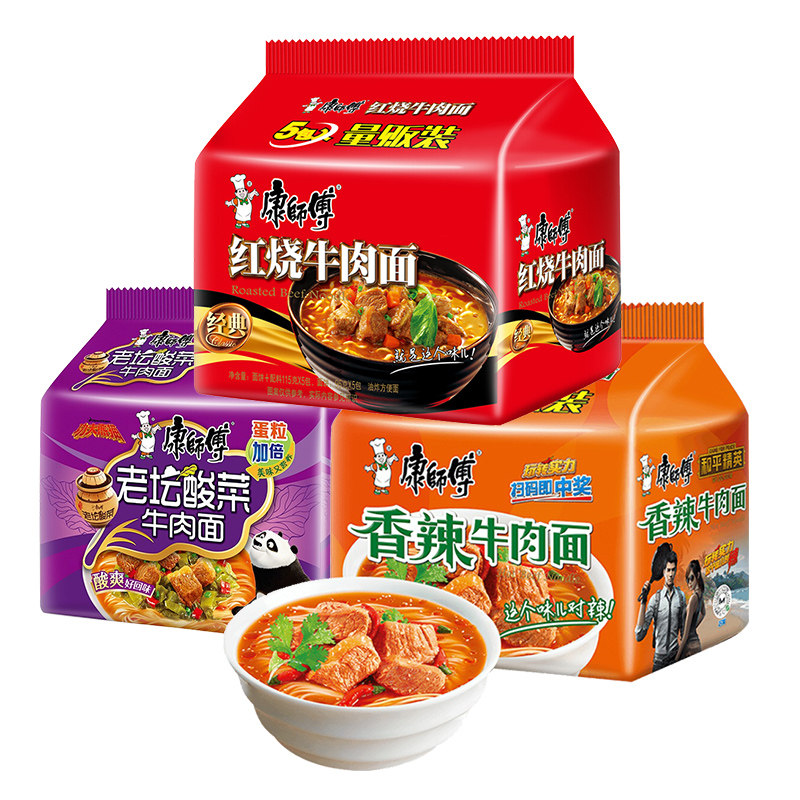 康师傅 Мгновенная лапша классическая боксерская боксерская микс и смешивание, смешивание и смешивание 5 компаний Baccaper Beef Noodle Instant Dormitory Dormitory Night Fast Fast Fast