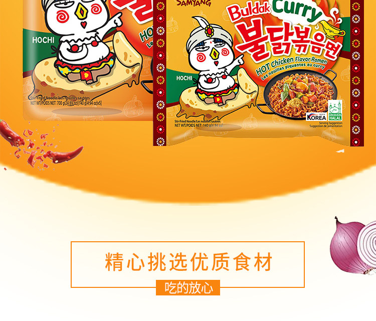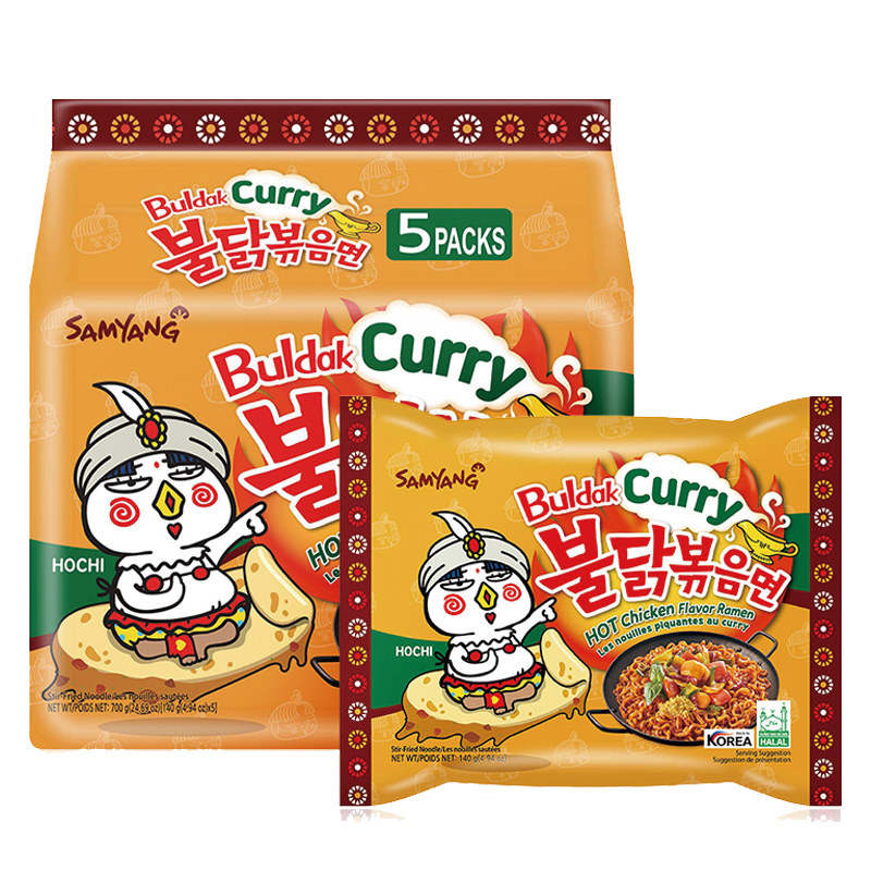 Южная Корея импортировала карри Санджу, лапша индейки, пряный куриный вкус 5 последовательных мешков для трех питания, удобная сухая лапша