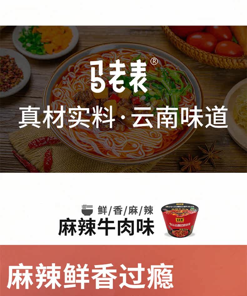 Ma Laobiao Yunnan Рисовая лапша Флагманский магазин Рисовая лапша Cross Bridge Рулонный порошок Халяльная еда Ведро с лапшой быстрого приготовления Маленькая кастрюля Рисовая лапша Фаст-фуд