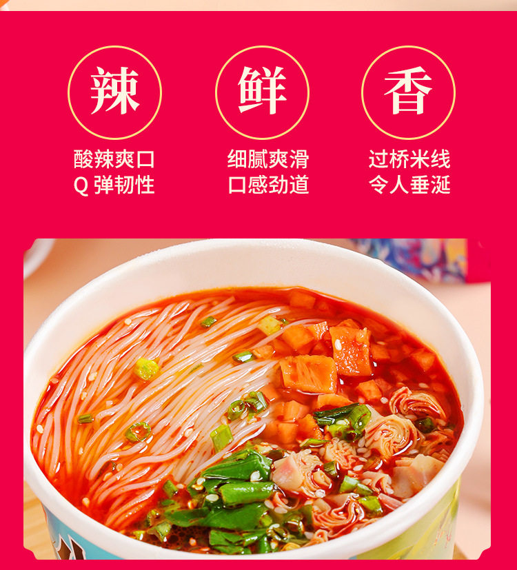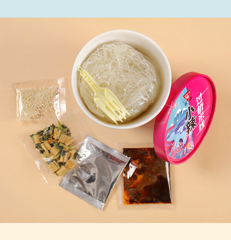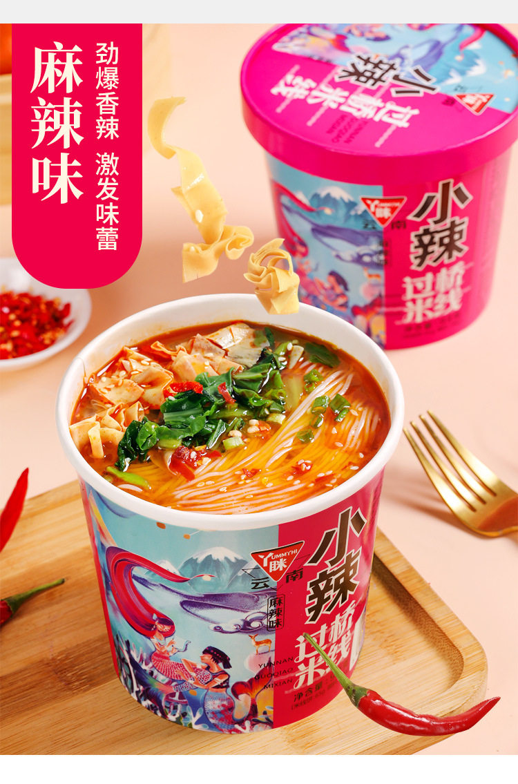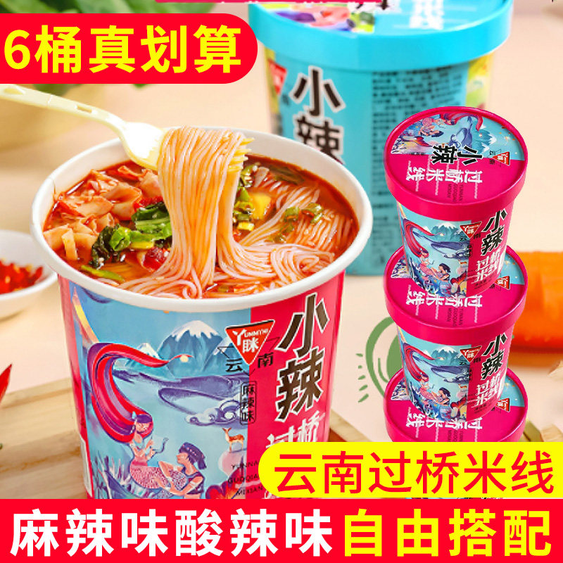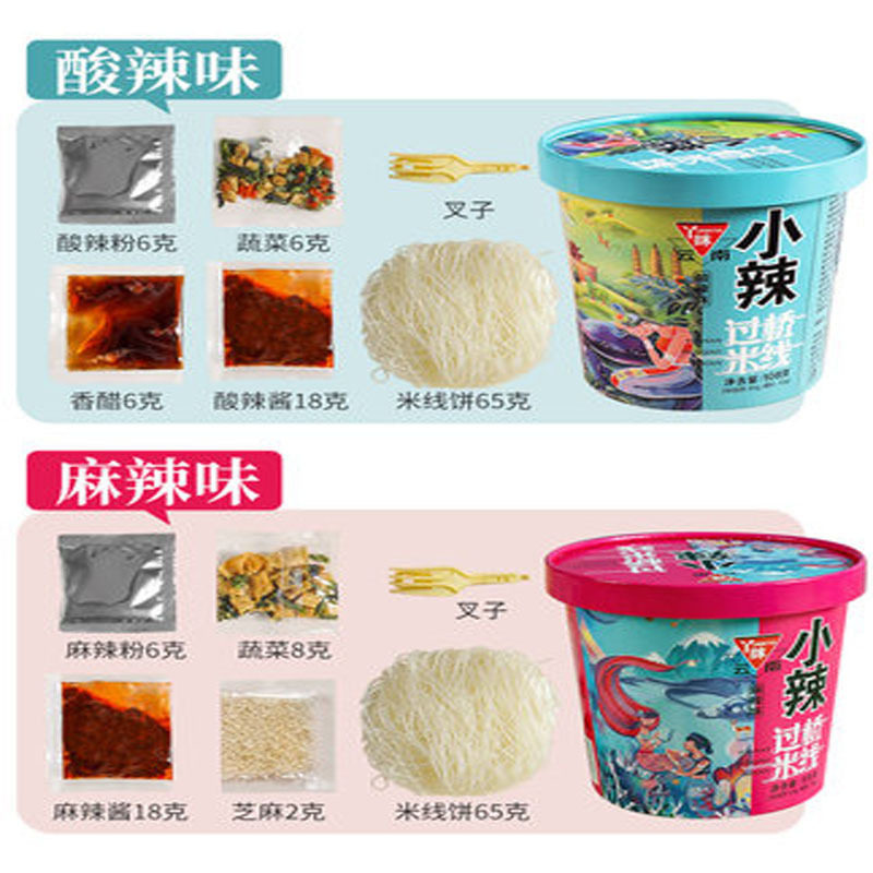 Yuelei рис лапша легкие бочки 6 баррелей мостовой рисовой лапши фаст -фуд пряный вкус острый тонкий порошок Yunnan специализированная рисовая лапша