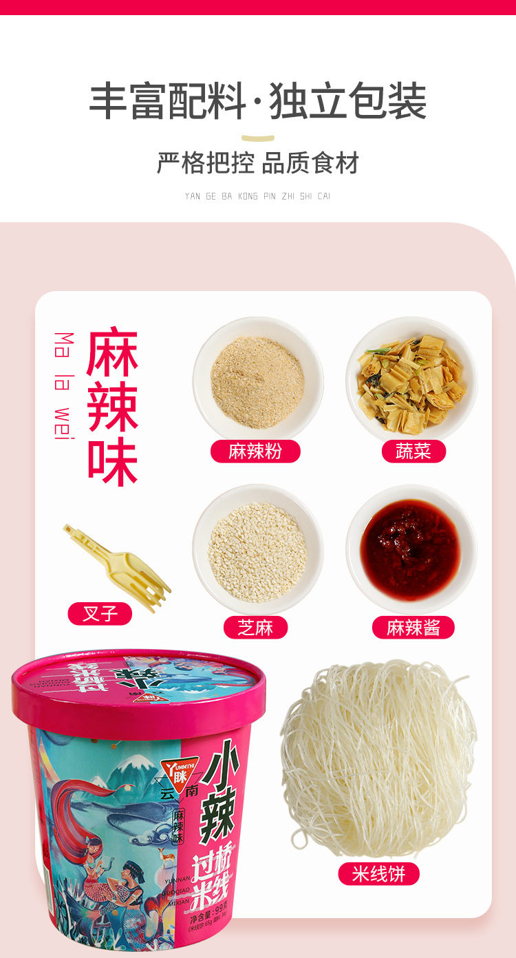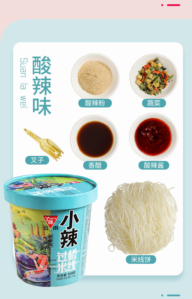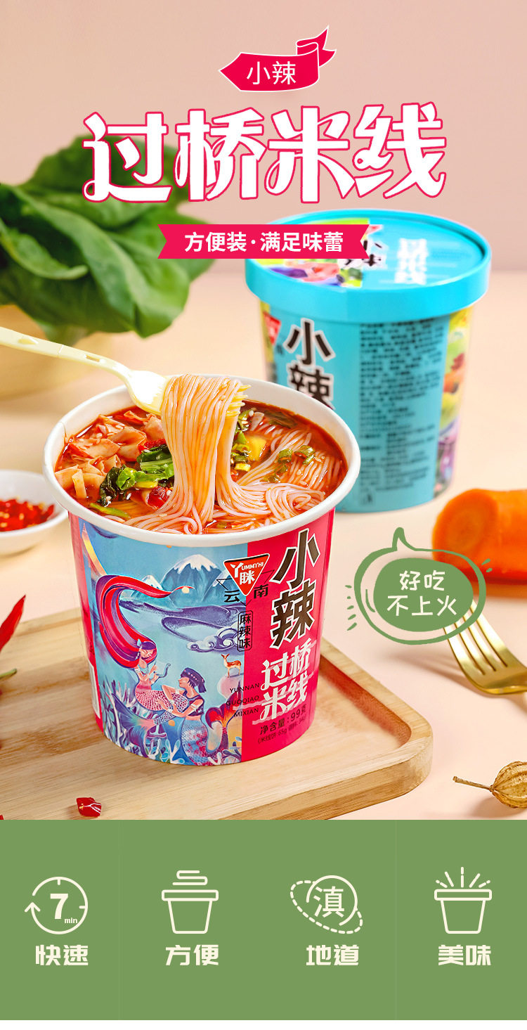Yuelei рис лапша легкие бочки 6 баррелей мостовой рисовой лапши фаст -фуд пряный вкус острый тонкий порошок Yunnan специализированная рисовая лапша