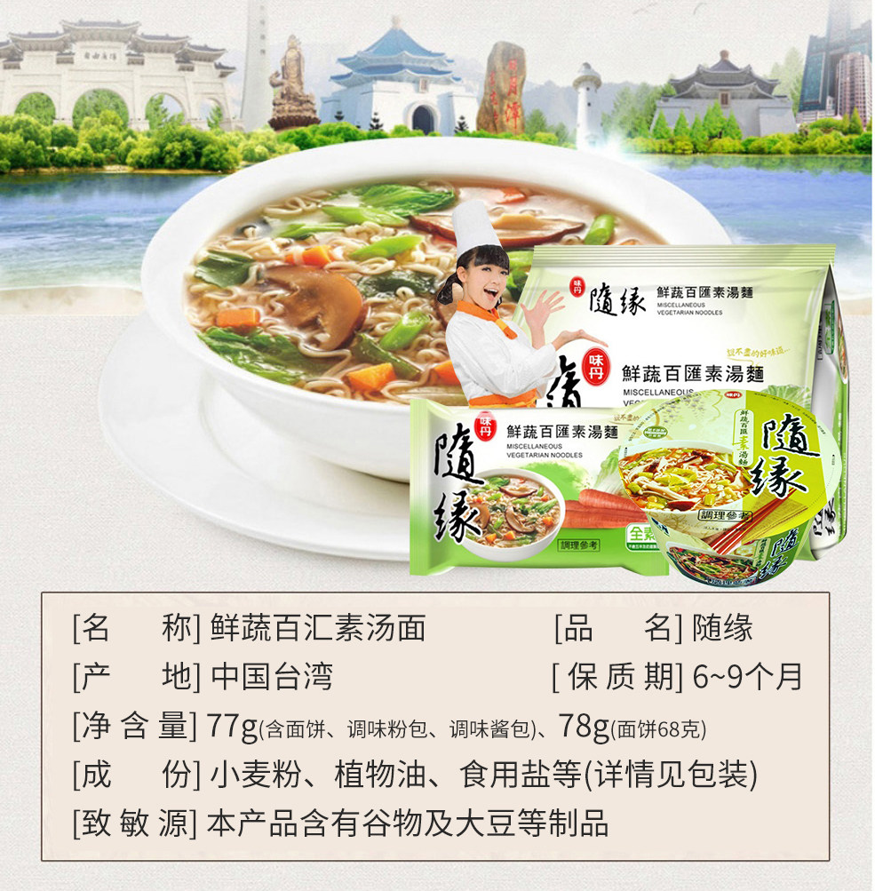Тайвань импортирован Suiyuan свежие овощные овощные суп байхуи вегетарианский вегетарианский вегетарианский экстраксельный суп с лапшой лапша овощной овощной суп лапша