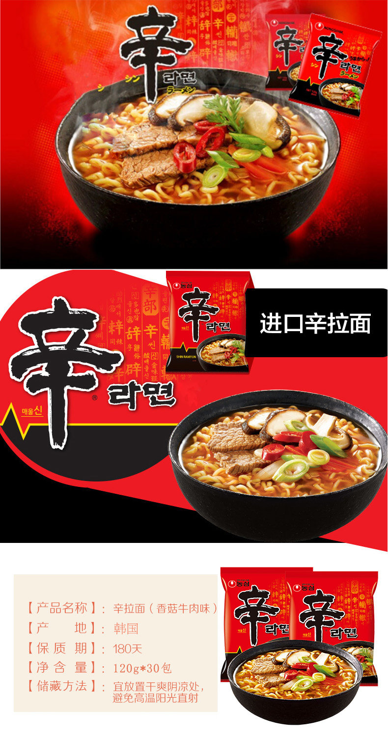 Южная Корея импортировала фермеров Синсин Рамен Мгновенный лапша 120G × 40 Упаковка фермеров Острый капуста коммерческий пирог быстрого фуда