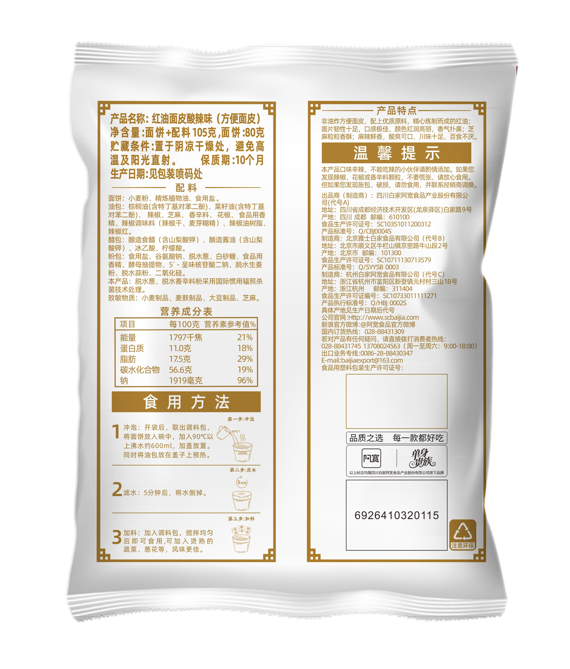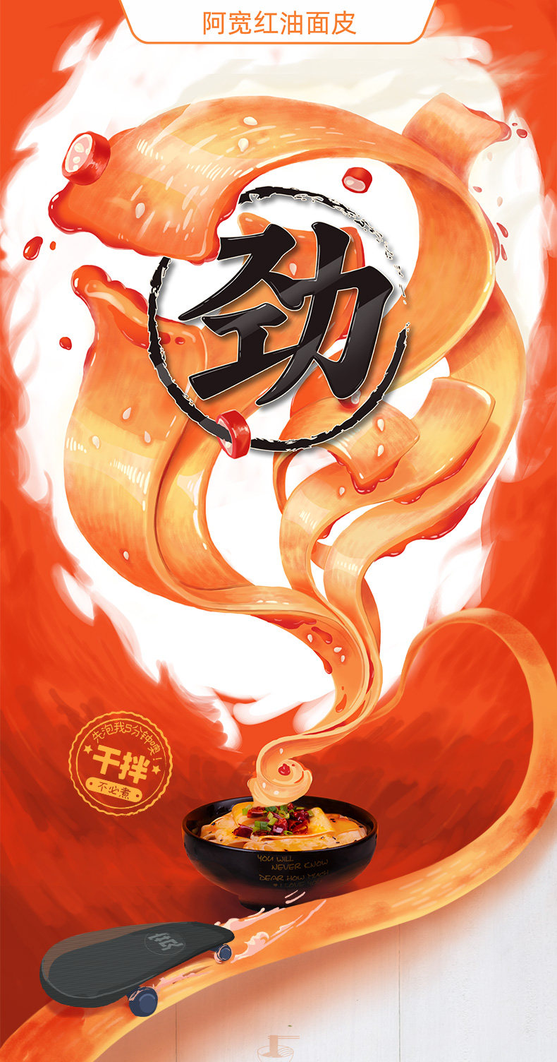 阿宽 Кожа с лапшой красного масла 3 пакета перца и лапши нереалированной лапши, соус с лапшой аннигиляции, Liangpi U2