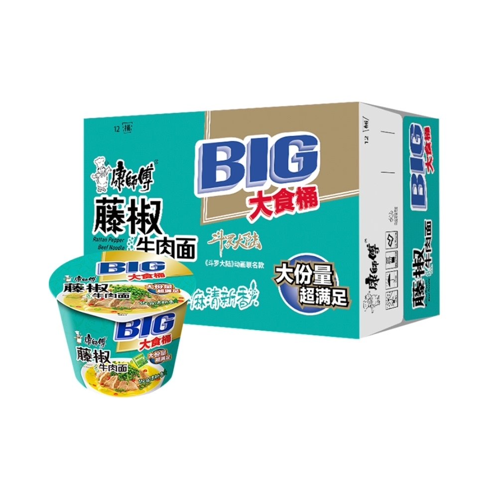 Мастер Канг ест бочки с кинетической лапшой говяжьей перца, 12 баррелей классической лапши мгновенного, фаст -фуд лапши