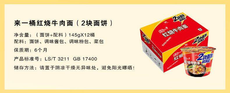 Унифицированная двойная торт Пряная говяжье лапша доходит до ведра многофункциональных вкусов, ужина фаст -фуда, красно -жареного виноградного квашеного ковша мгновенная лапша