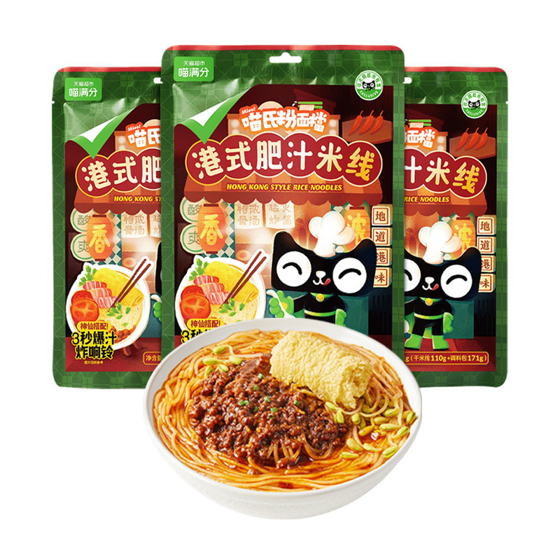 [Meow Manchu] Жирный сок рис лапша 281G*3 упаковки свежей хрустящей бобов острый кислый суп порошок мгновенная лапша