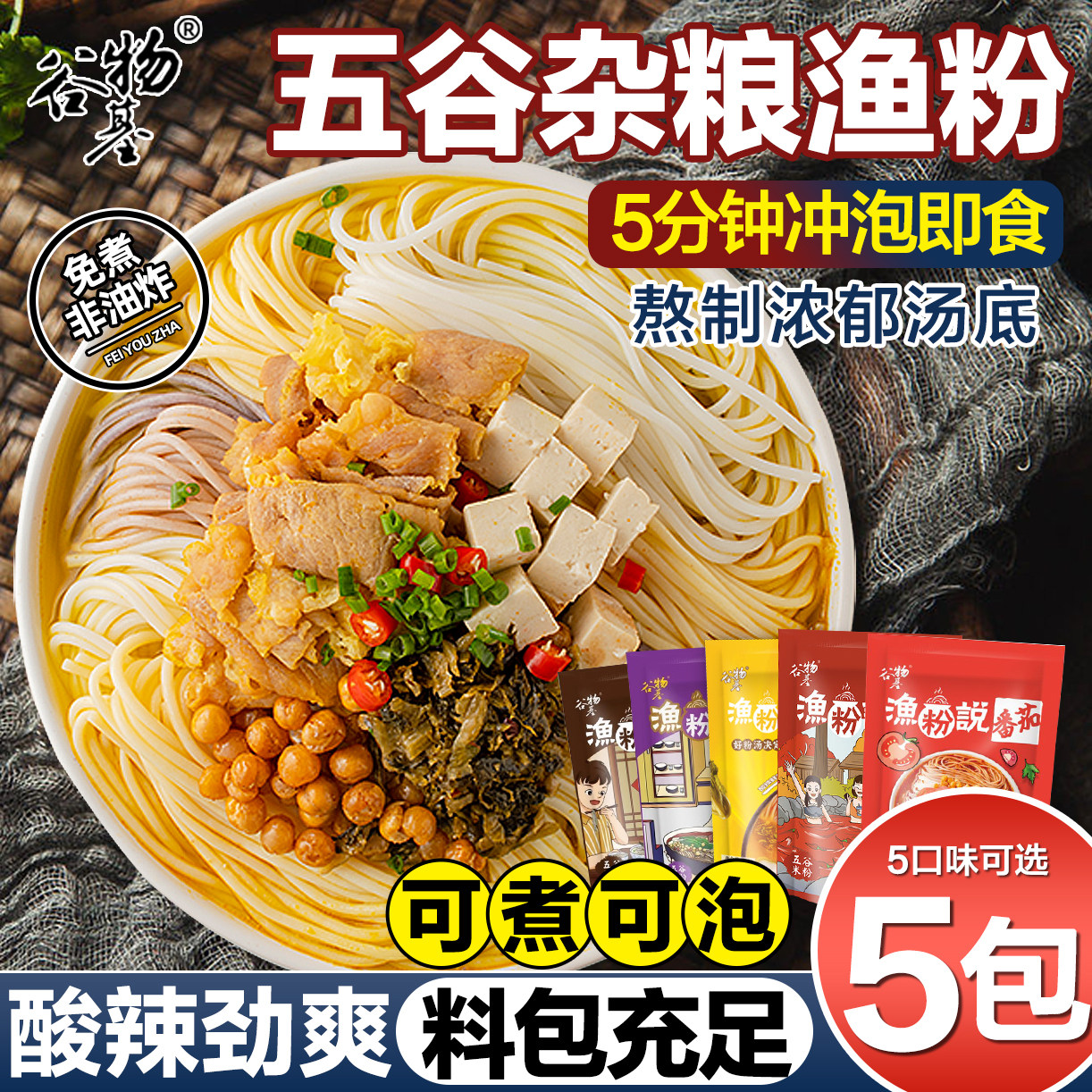 谷物基 Пять злаков, рыбная мука, многозерновая рыбная мука, рисовая лапша быстрого приготовления, рисовая лапша, острый сухой завтрак, острая и кислая рисовая лапша в пакетиках