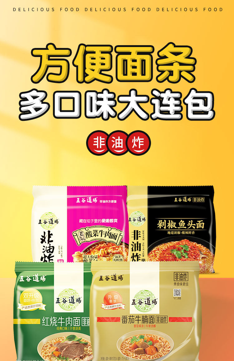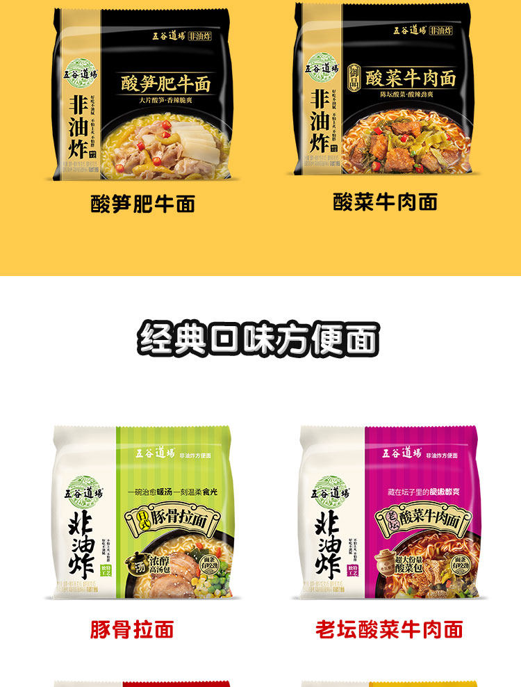 五谷道场 Не жареная лапша, кислые бамбуковые побеги, жирная говядина, маринованная капуста, говяжья лапша 5 мешков, целая коробка с ленивой лапшой