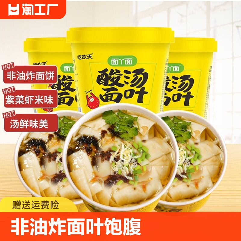 吃欢天 Гречневая лапша, кислый суп, листья лапши, целая коробка, готовая к употреблению, лапша быстрого приготовления со вкусом морских водорослей и креветок, фирменная Хэнань, для заваривания на полный желудок.