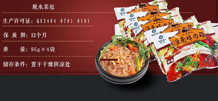 Специализированность Anhui Specialty Huainan Beef Soup Sack удобен для фанатов фаст -фуд супа 4*95 граммов сумки. Установка оригинального острый тип