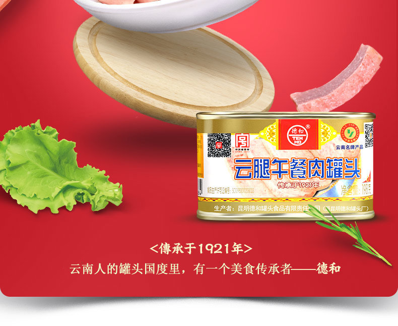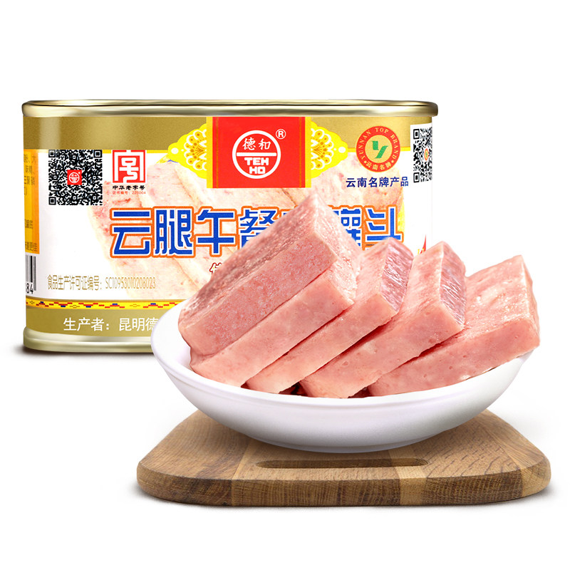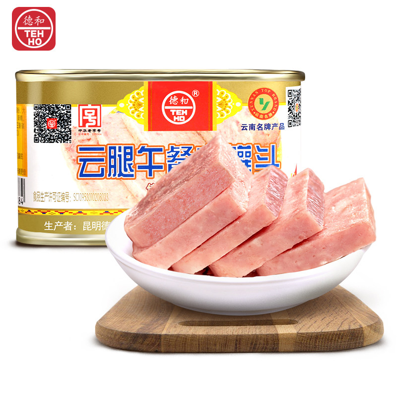 Dehe Yun Legs Connied Meat 198g*24 банки китайского старомодного горячего горшкового ветчины ингредиенты ветчины, чтобы съесть всю коробку оптом