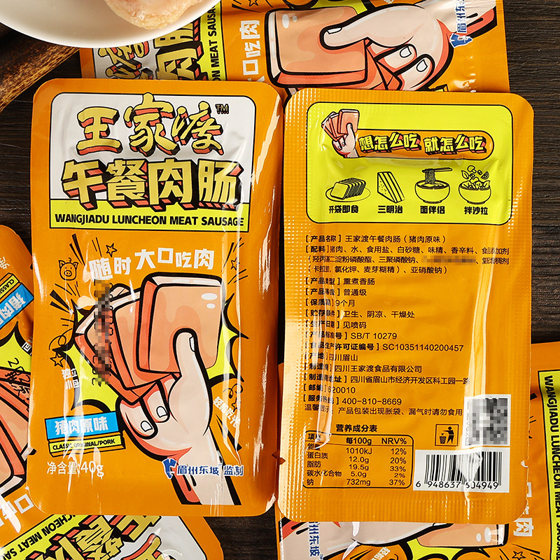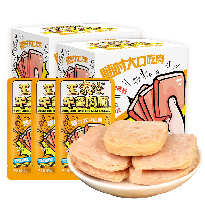 Wangjiadu Lunch Meat Swices из оригинальных 40 г*24 маленьких мешков упакованы для запястья без крахмала для бутербродов с бутербродами с бутербродами