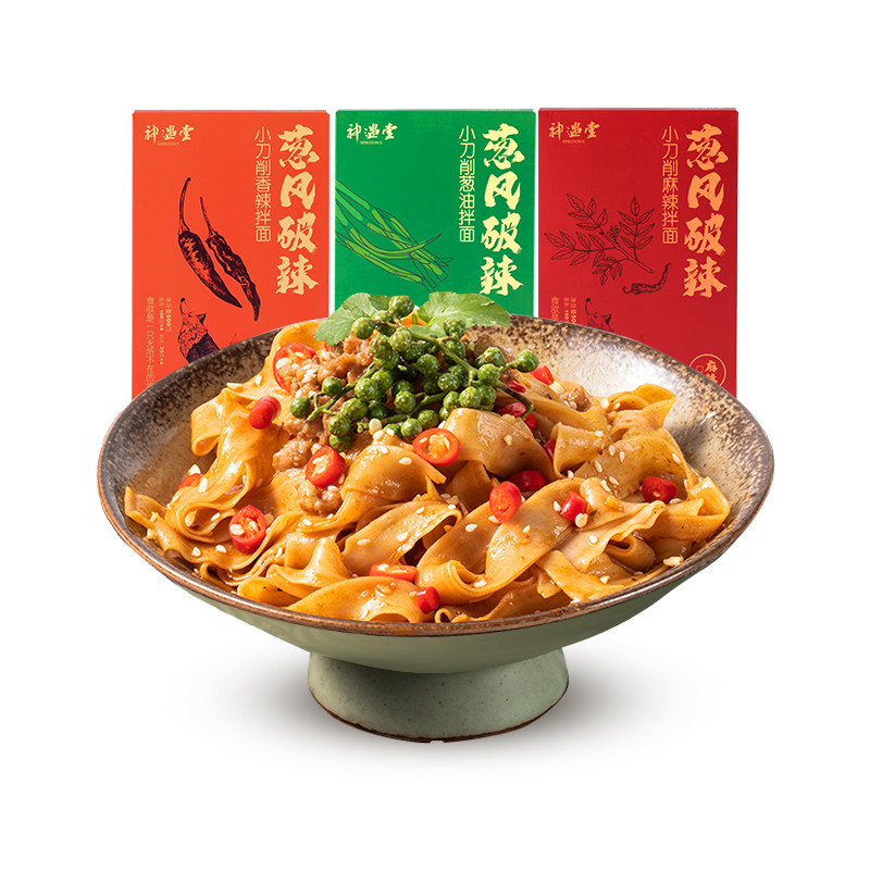 神遇堂 Аутентичный нож, низкофленк широкая, пряная зеленая луковая масло, сухой лапша, лапша масла, упаковка, упаковка фаст -фуд