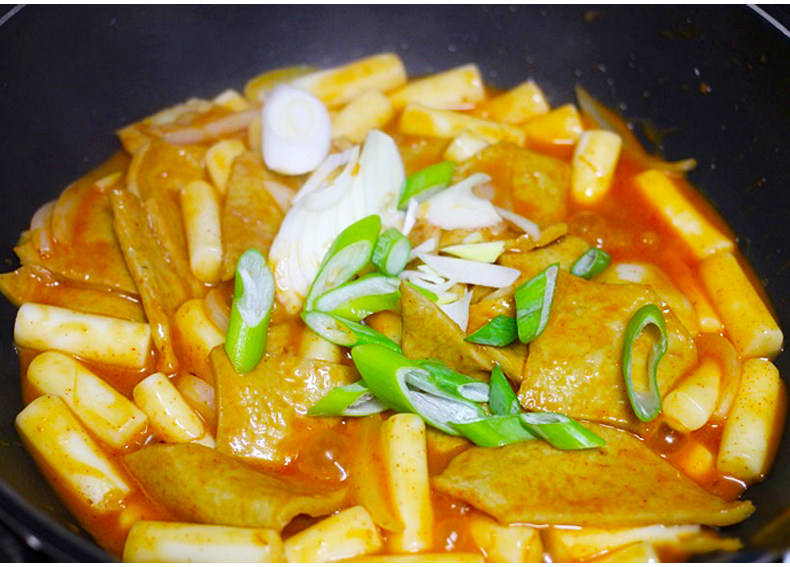 ② Положите липкий пирог и другие ингредиенты в кастрюлю после кипячения воды