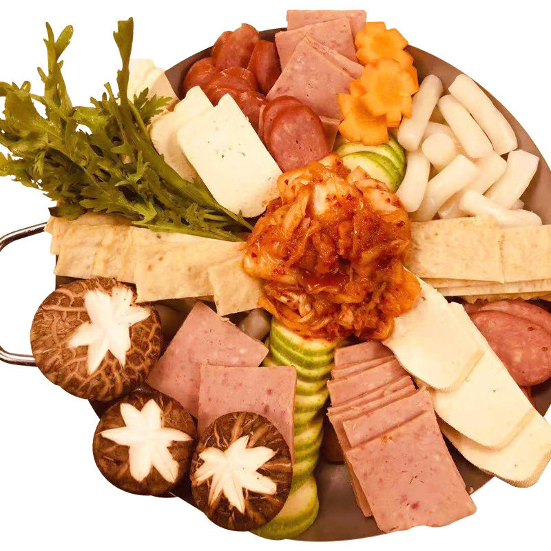Корейские в стиле войска горячий горшок ингредиенты новогодний пирог Горячий горшок Комбинированный пакет острый соус Корейский доставка пищи корейские войска Горячие горшки нижние ингредиенты