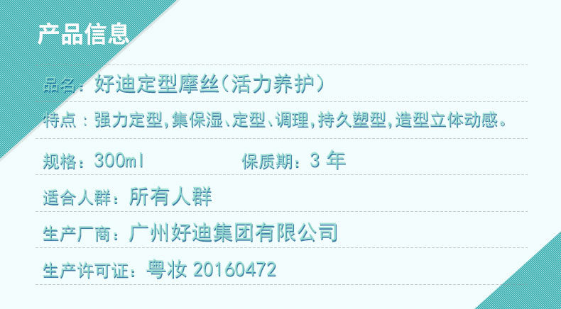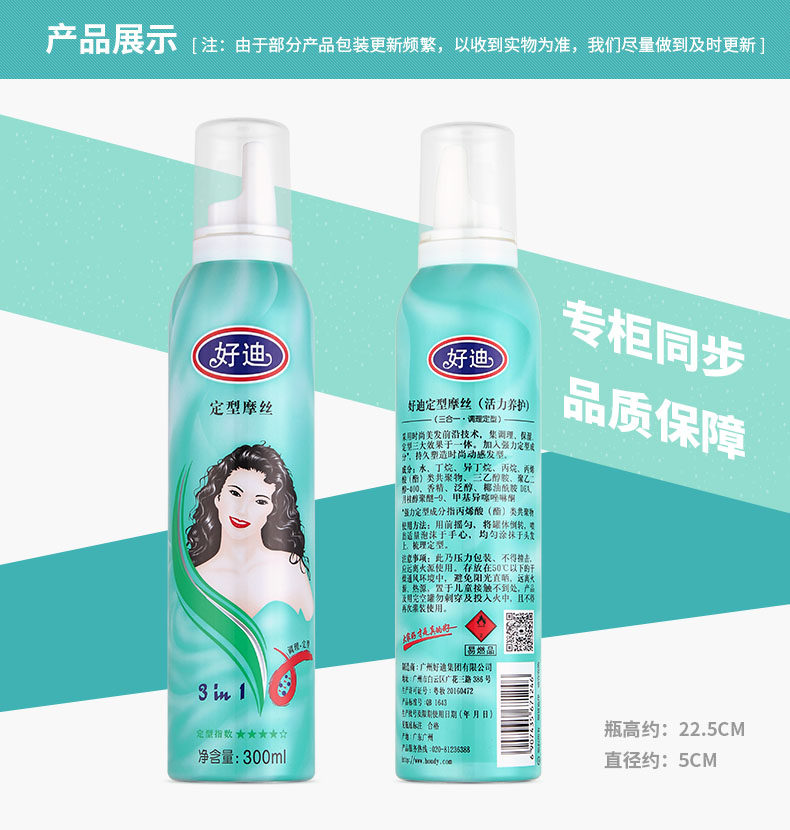 好迪 Освежающий увлажняющий мощный кудрявый мусс подходит для мужчин и женщин для выпрямления волос, стайлинг